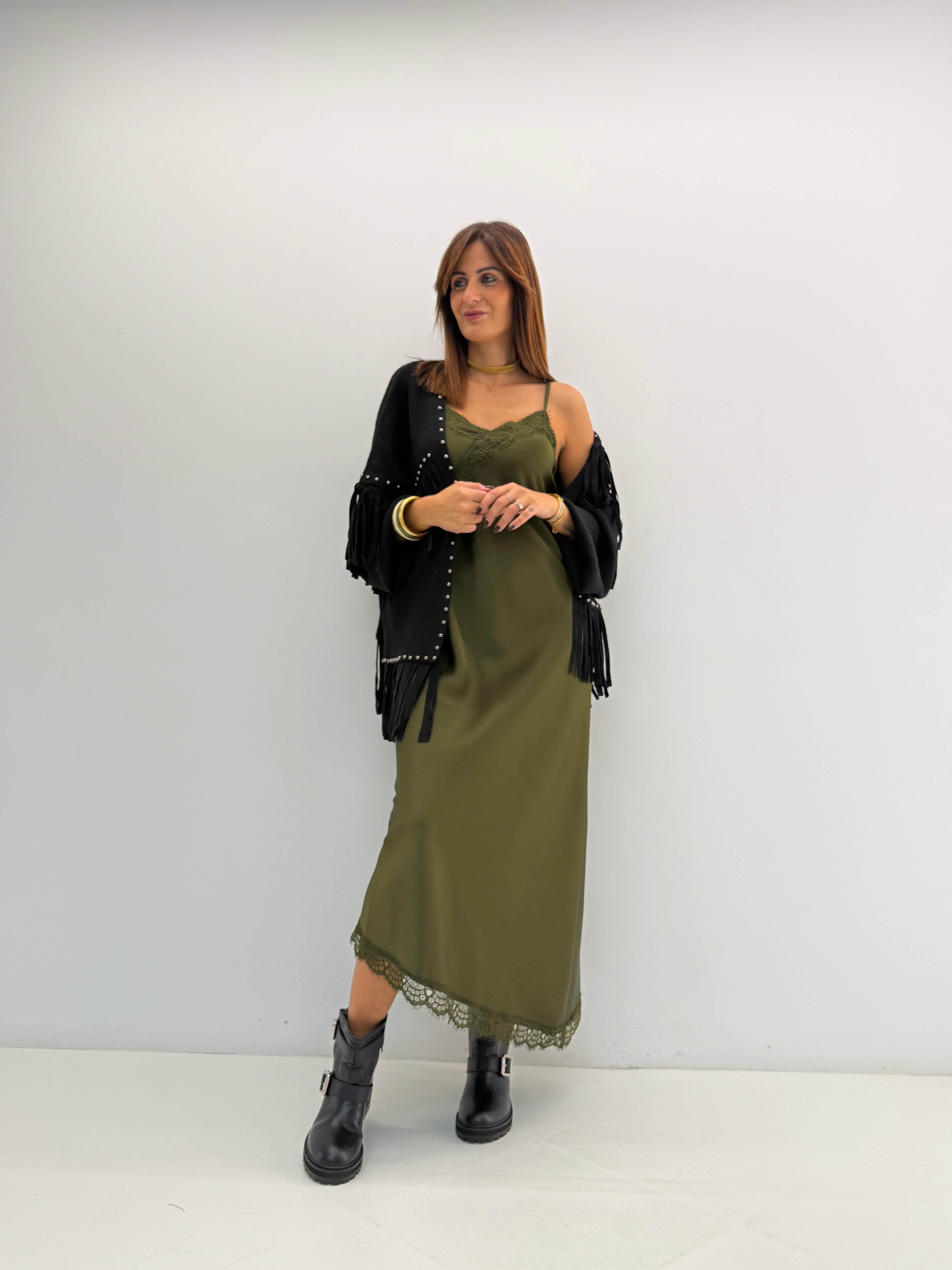 Abito, effetto satin con inserti in pizzo, spalline sottili regolabili.