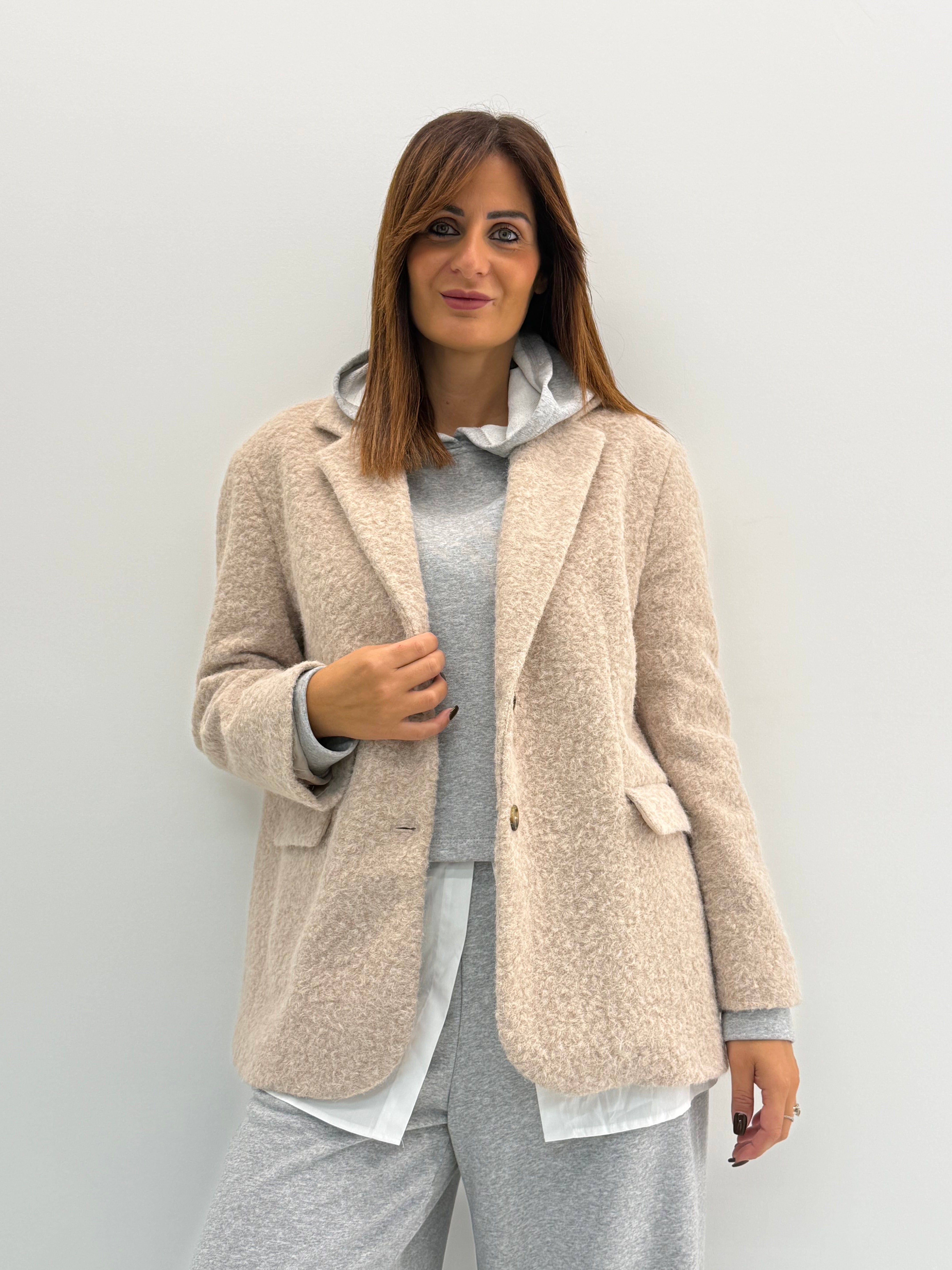 Blazer oversize da donna in lana cotta, un capo caldo e versatile ideale per la stagione invernale. Foderato all'interno.