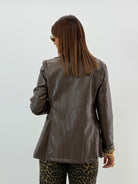 Giacca in ecopelle, fodera interna, colletto rever e chiusura frontale con bottone.