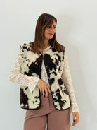 Gilet teddy, realizzato in morbido tessuto effetto pelliccia, fantasia muccata a contrasto, un dettaglio di tendenza che dona grinta e originalità a ogni look. La vestibilità comoda e la chiusura frontale lo rendono pratico e versatile.