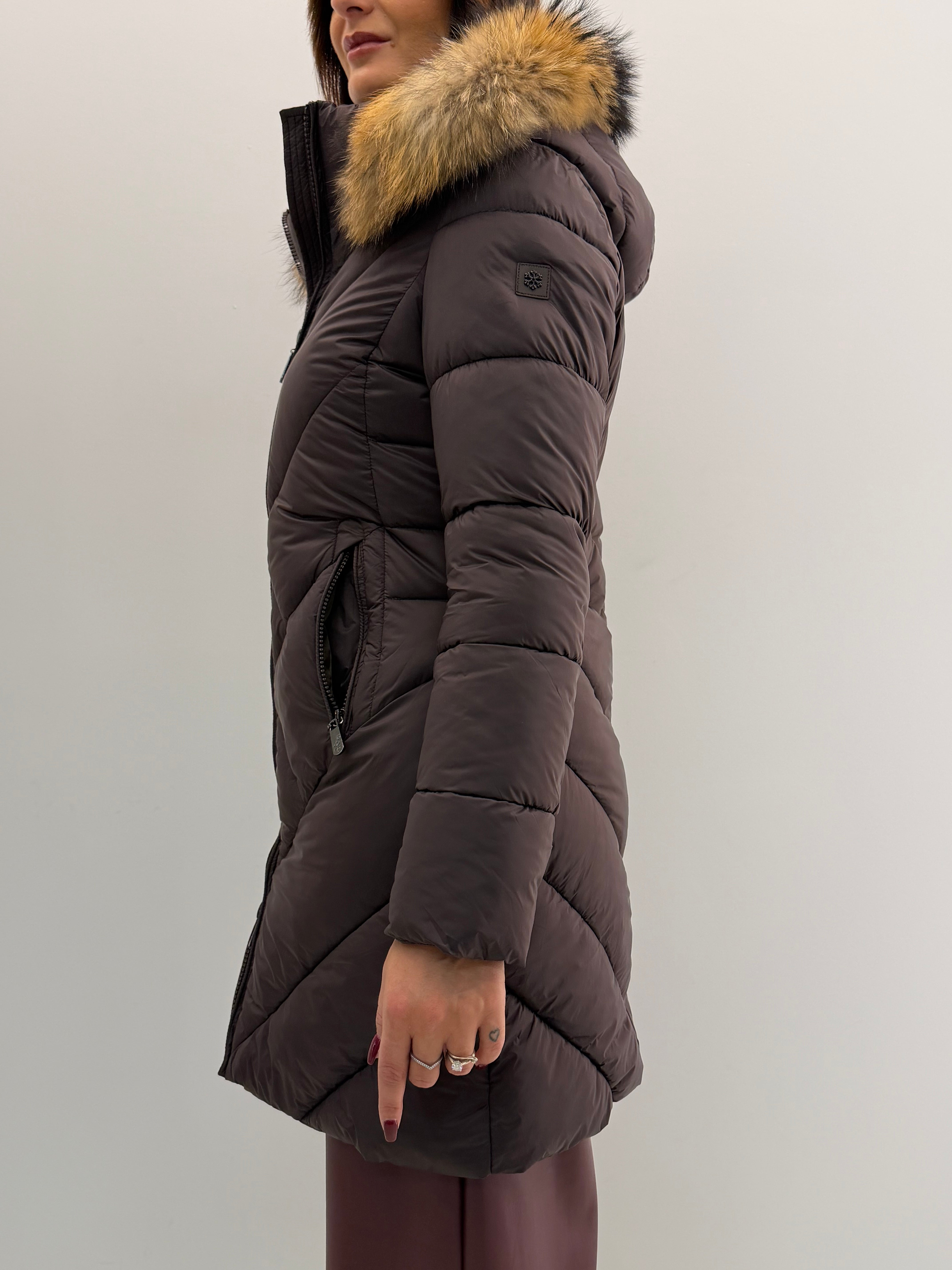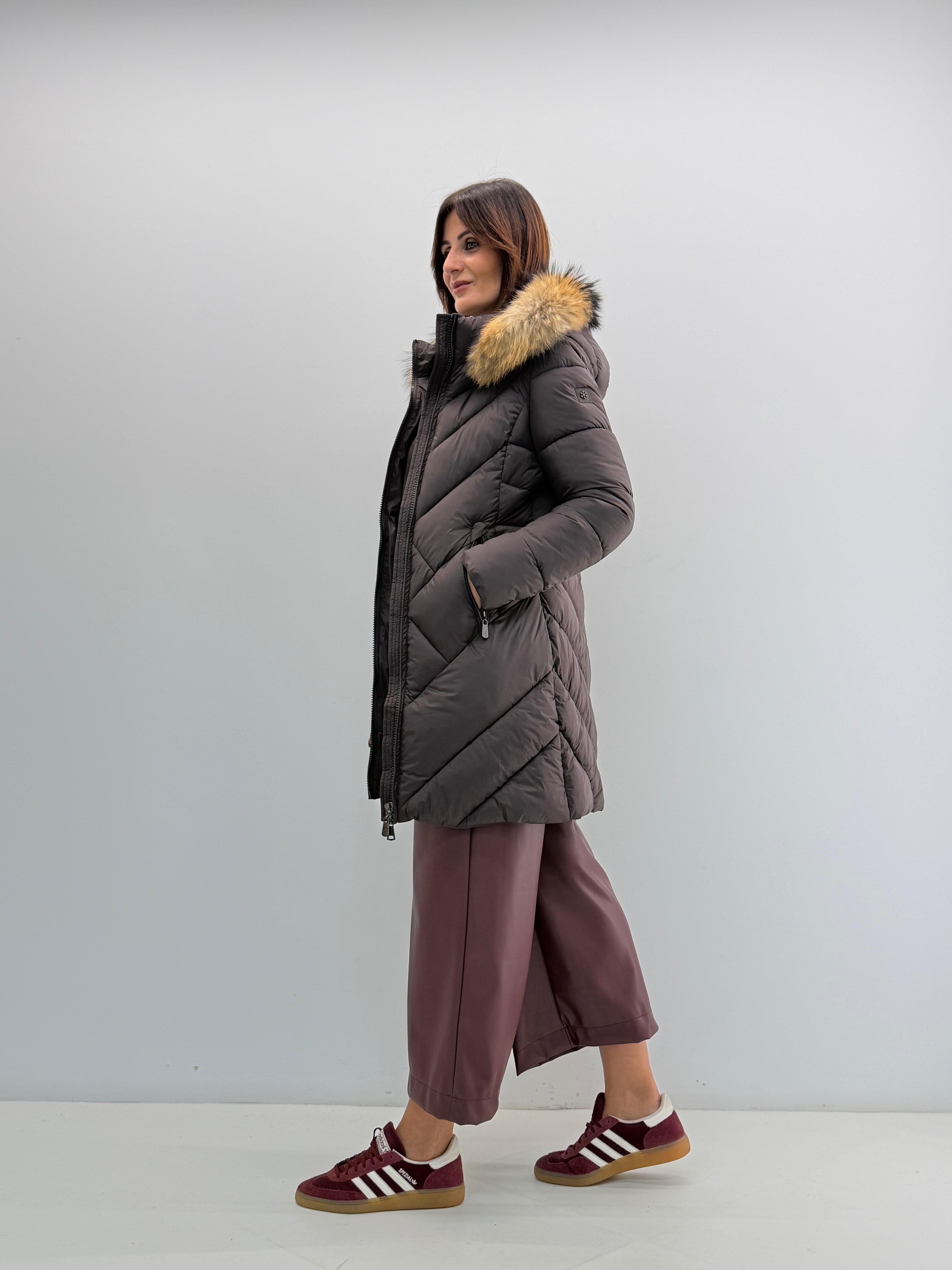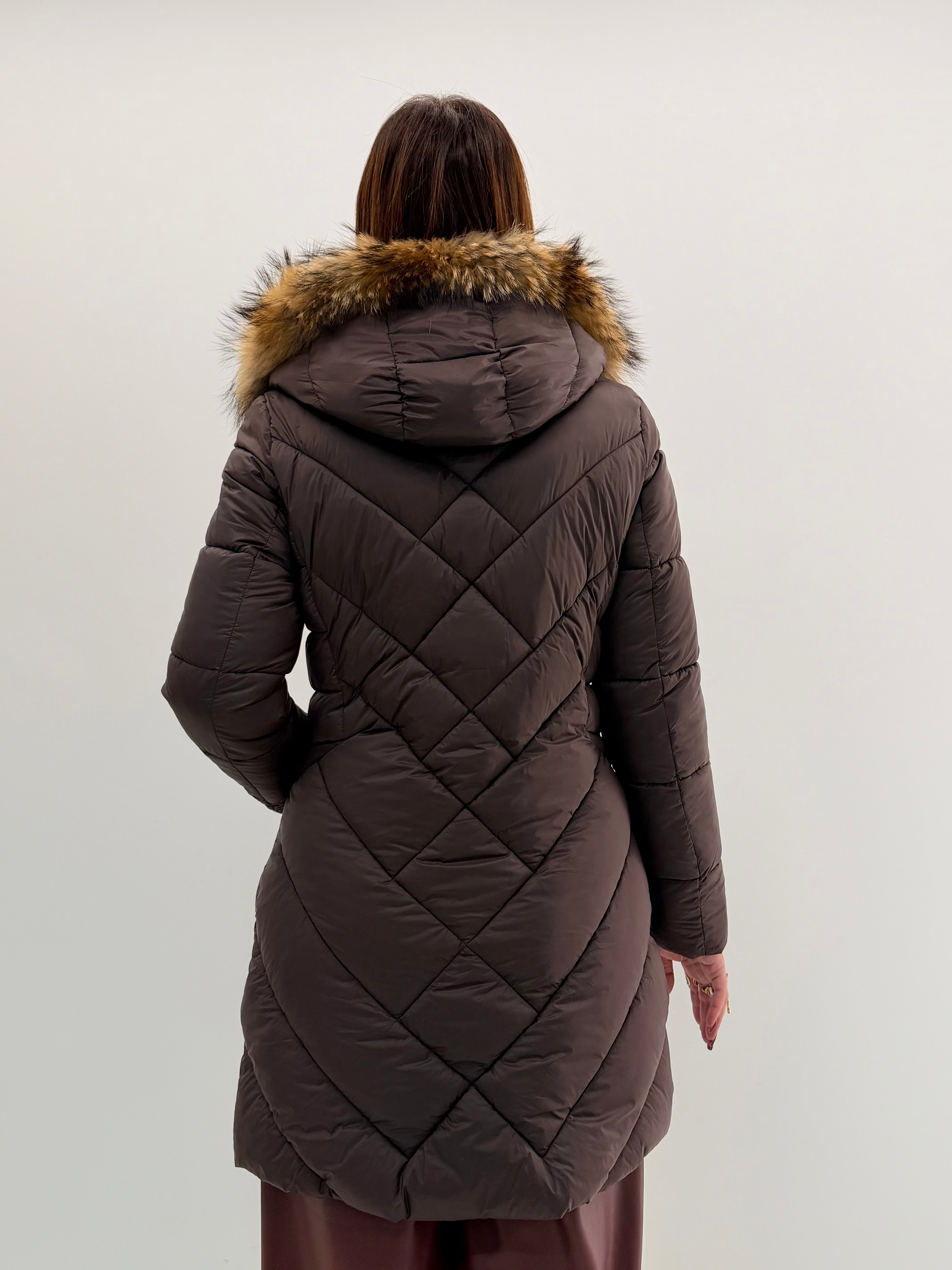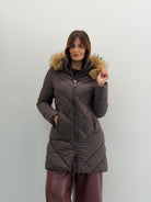 Piumino morbido, cappuccio removibile, tasche sul davanti. Chiusura con zip a doppio cursore.