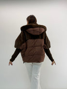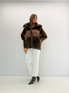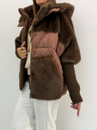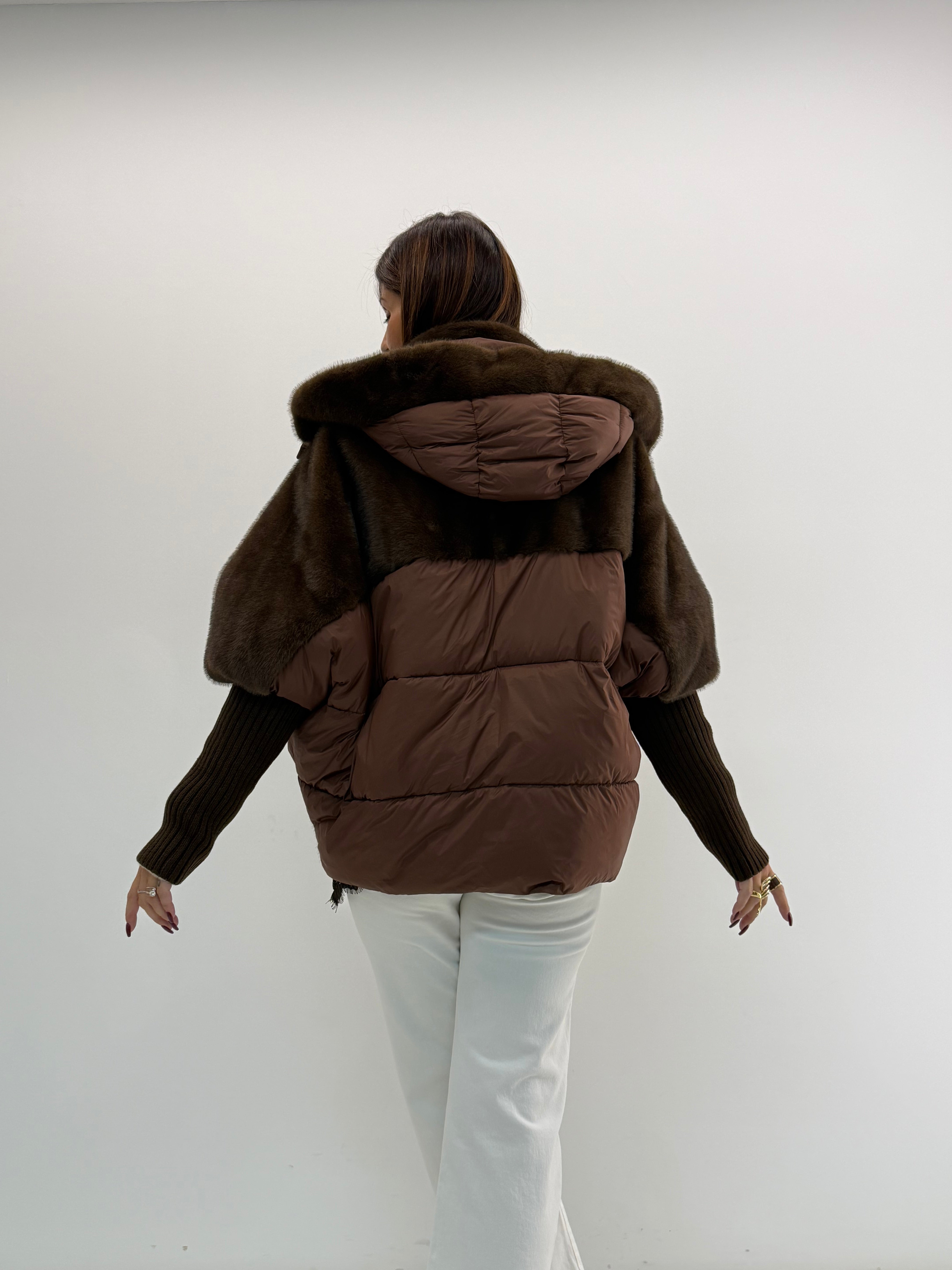 Piumino morbido, con inserti in eco pelliccia, cappuccio removibile, manicotti alti, tasche sul davanti. Chiusura con zip e bottoni.