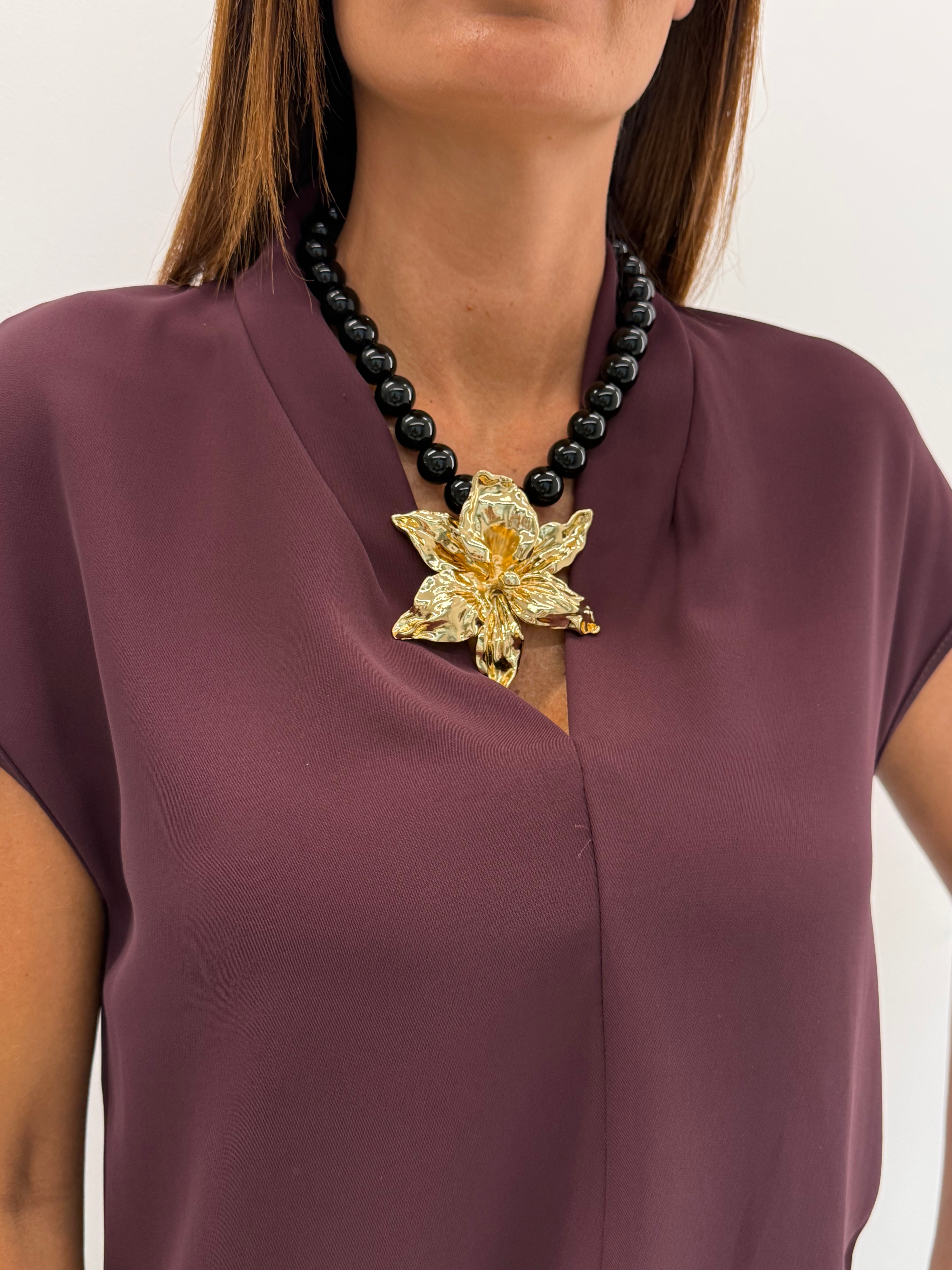 COLLANA AMELY NERA FIORE GOLD