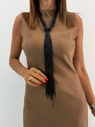 Collana a cravattina, chiusura con gancetto. Elementi geometrici caratterizzano questa collana dal design fresco e divertente, renderà il tuo outfit ancora più raffinato.