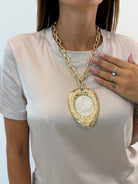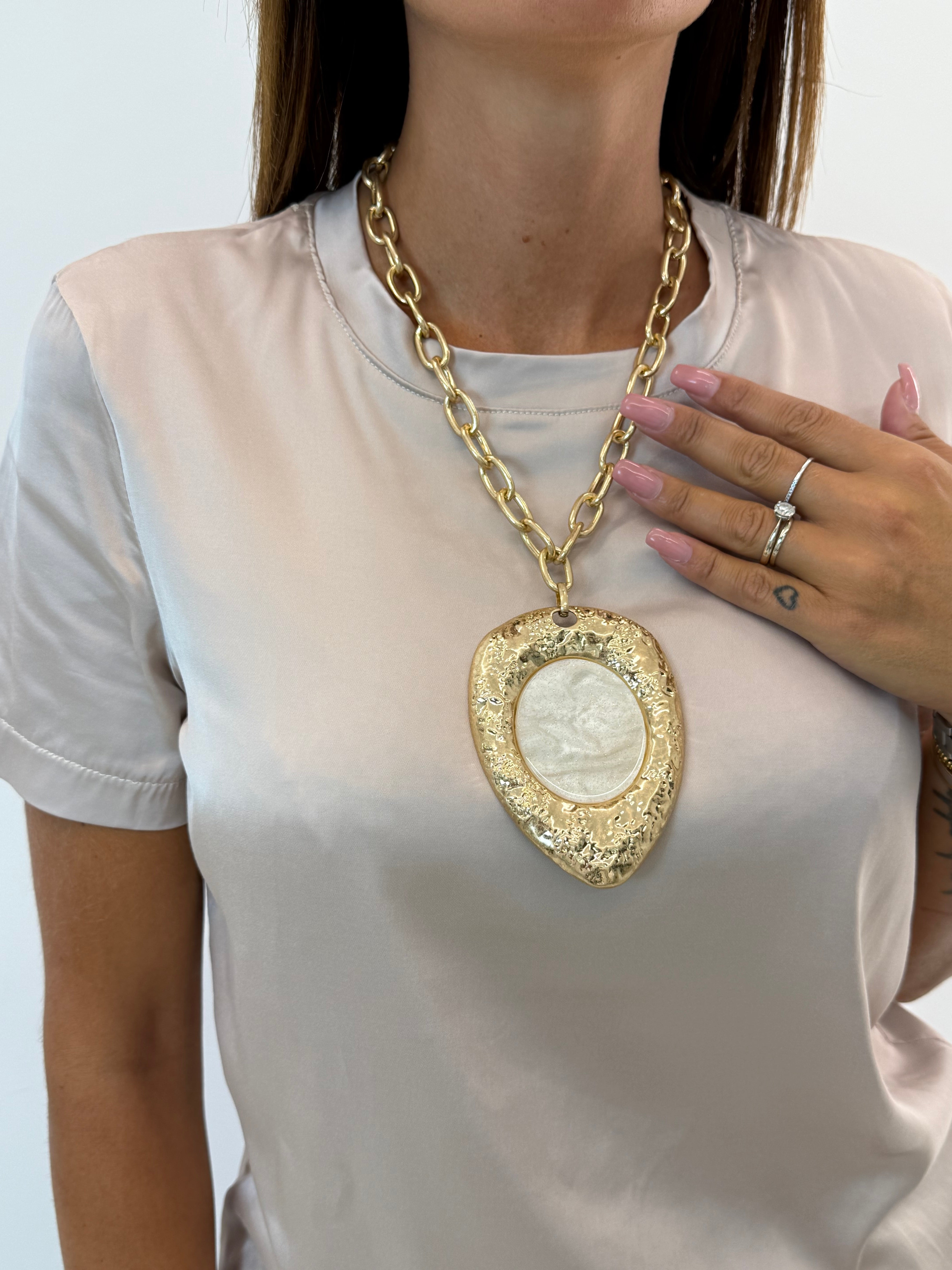 Elementi geometrici caratterizzano questa collana dal design fresco e divertente, renderà il tuo outfit ancora più raffinato. Chiusura con gancetto.