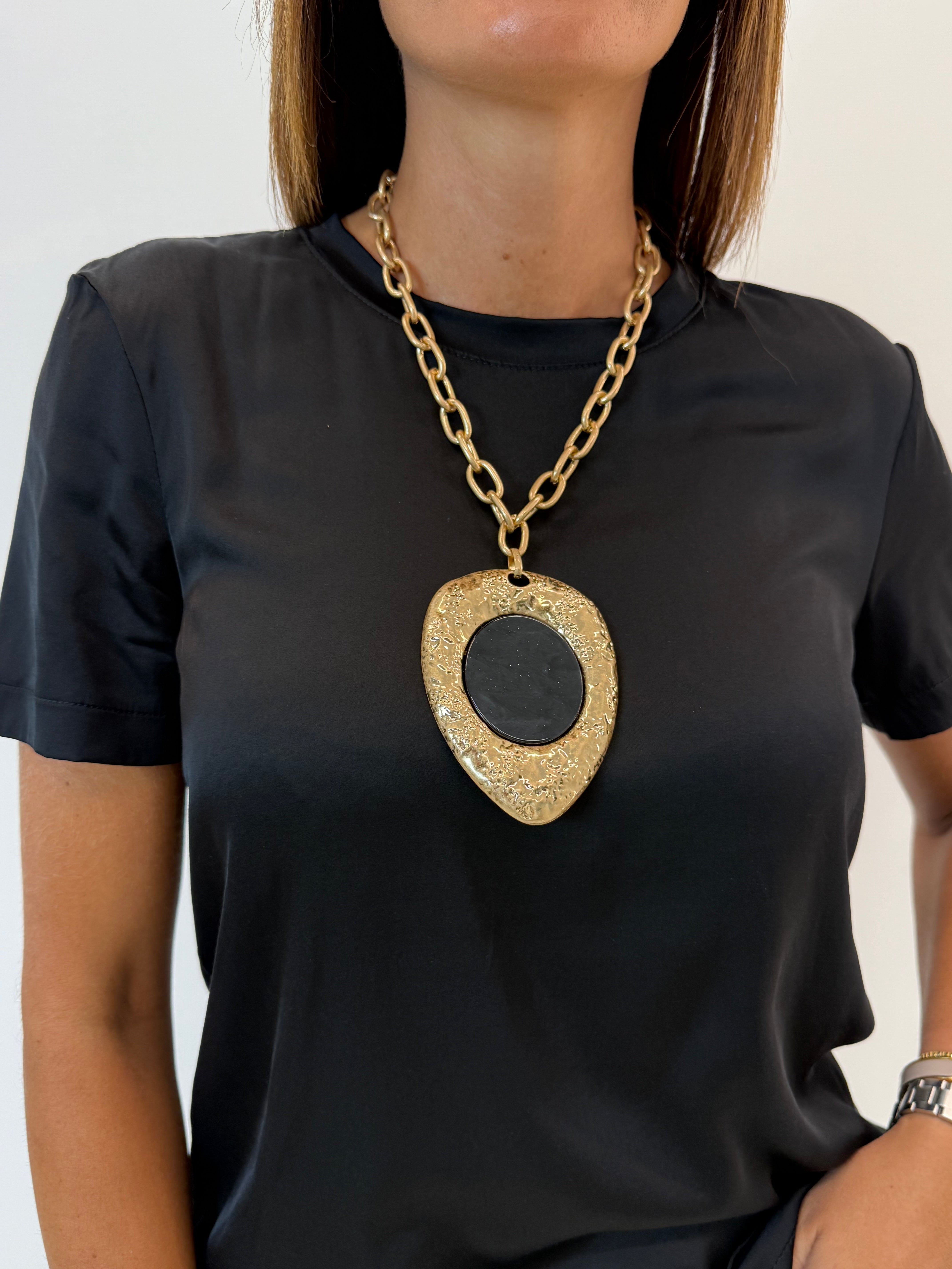 Elementi geometrici caratterizzano questa collana dal design fresco e divertente, renderà il tuo outfit ancora più raffinato. Chiusura con gancetto.
