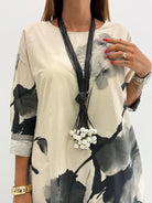 Collana lunga a fili con perle panna. Elementi geometrici caratterizzano questa collana dal design fresco e divertente, renderà il tuo outfit ancora più raffinato.