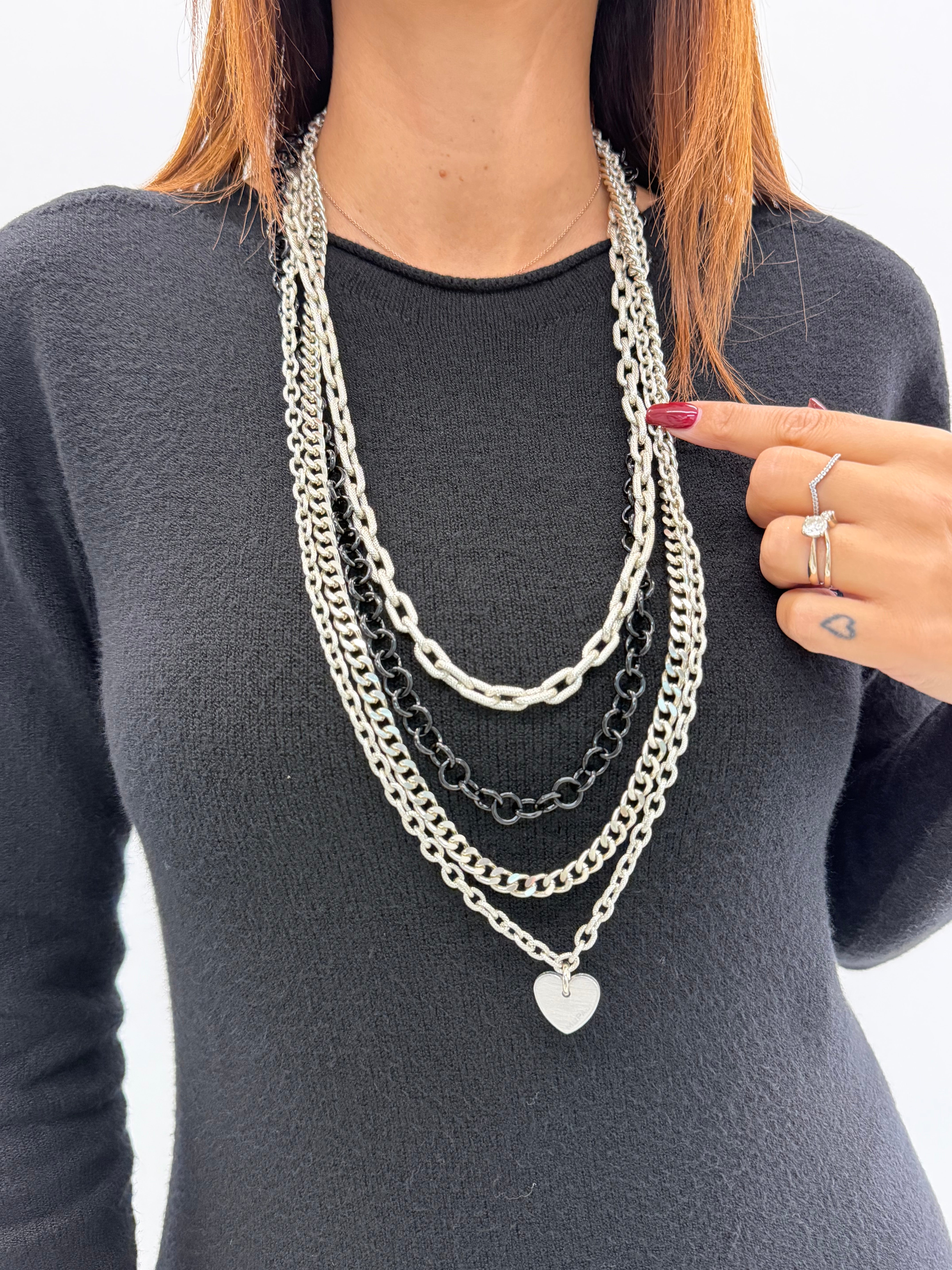 COLLANA QUATTRO FILI SILVER/NERA MUPAJI