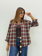 CAMICIA LADY A QUADRI BORDEAUX