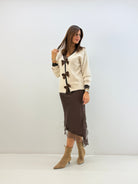 la modella in foto è alta 171 cm e indossa la tg S/M