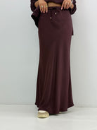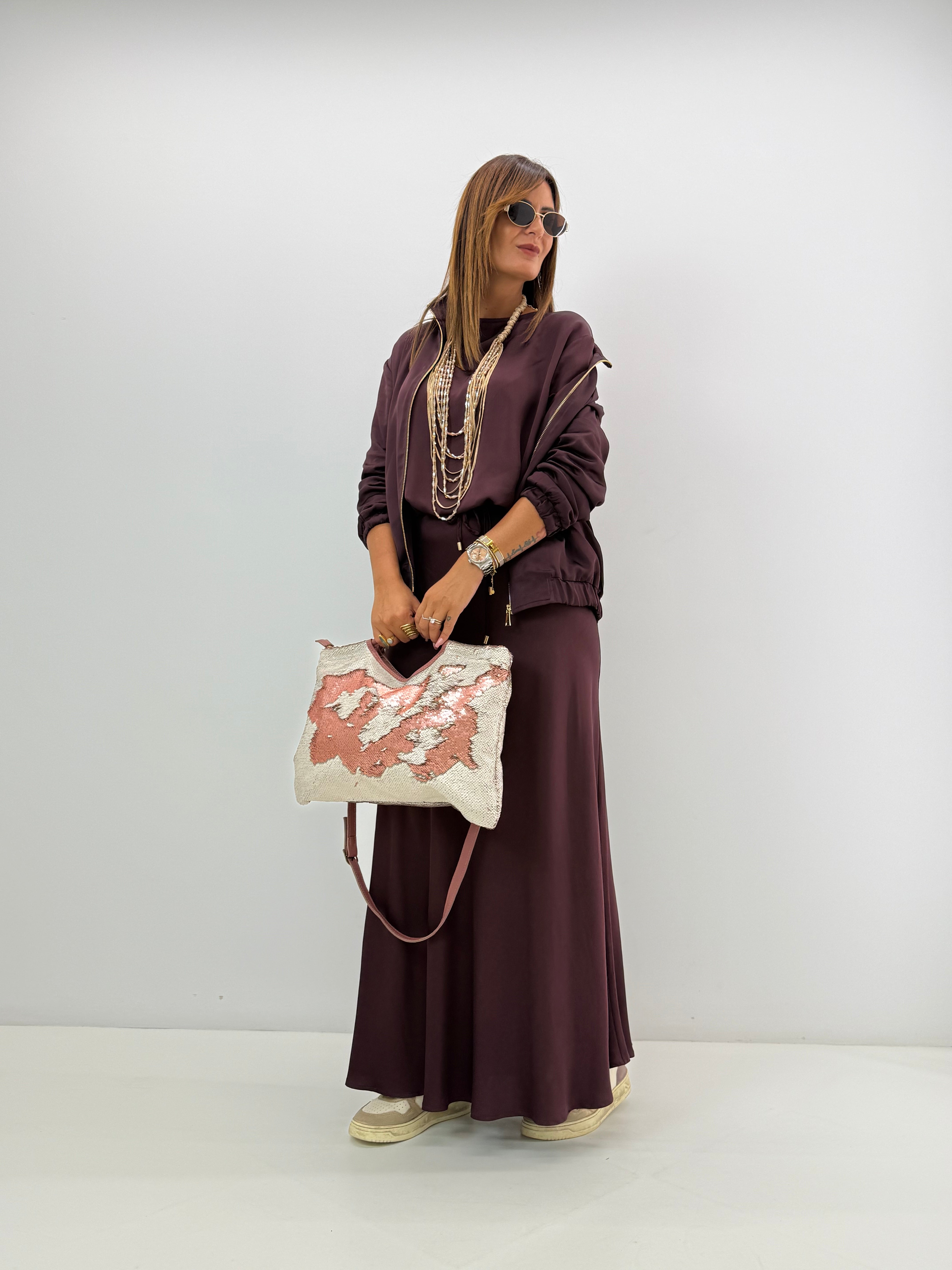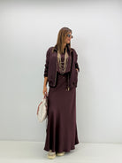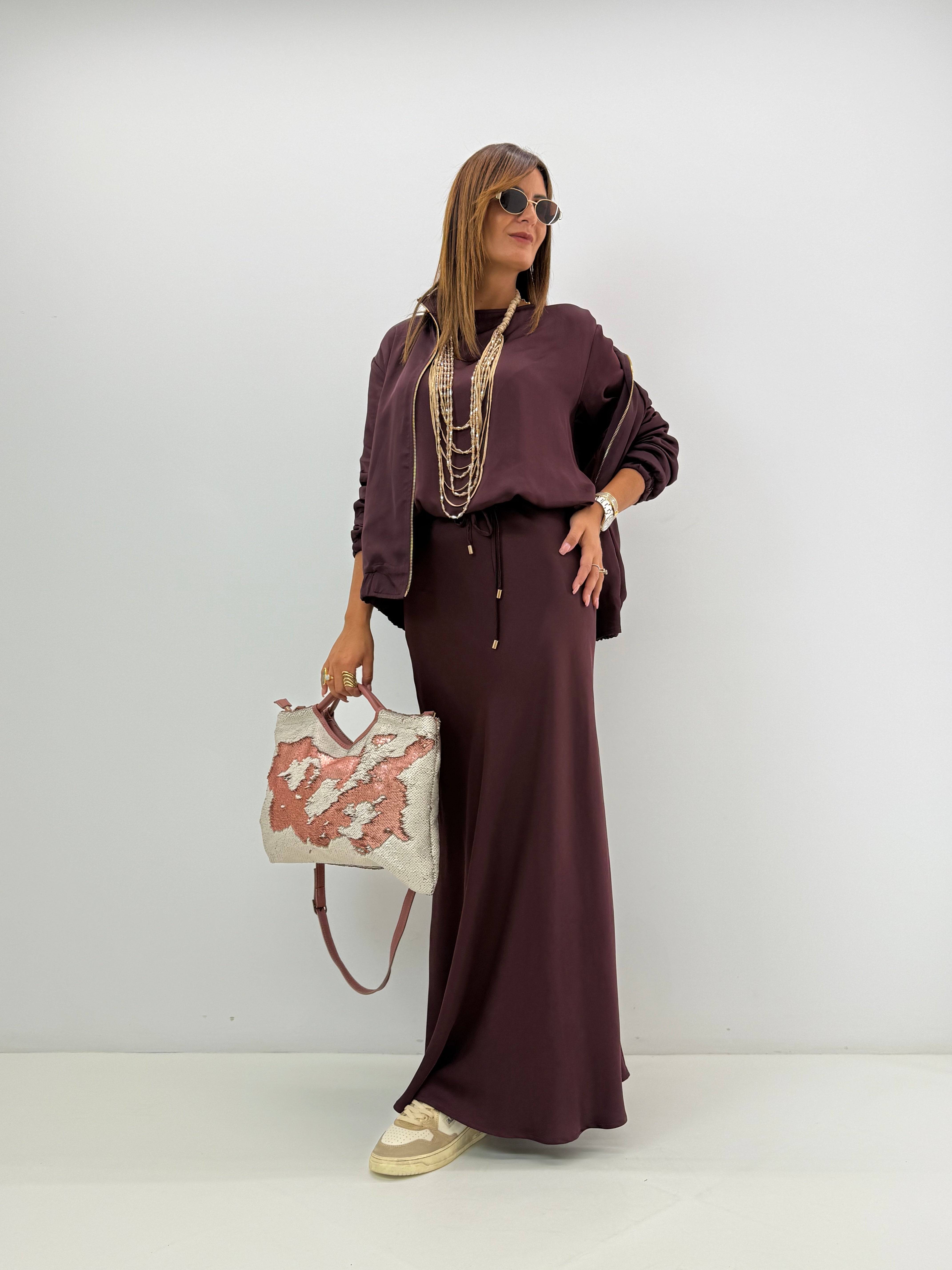 Gonna in satin di viscosa, con elastico in vita e coulisse.