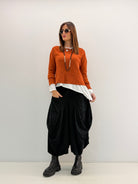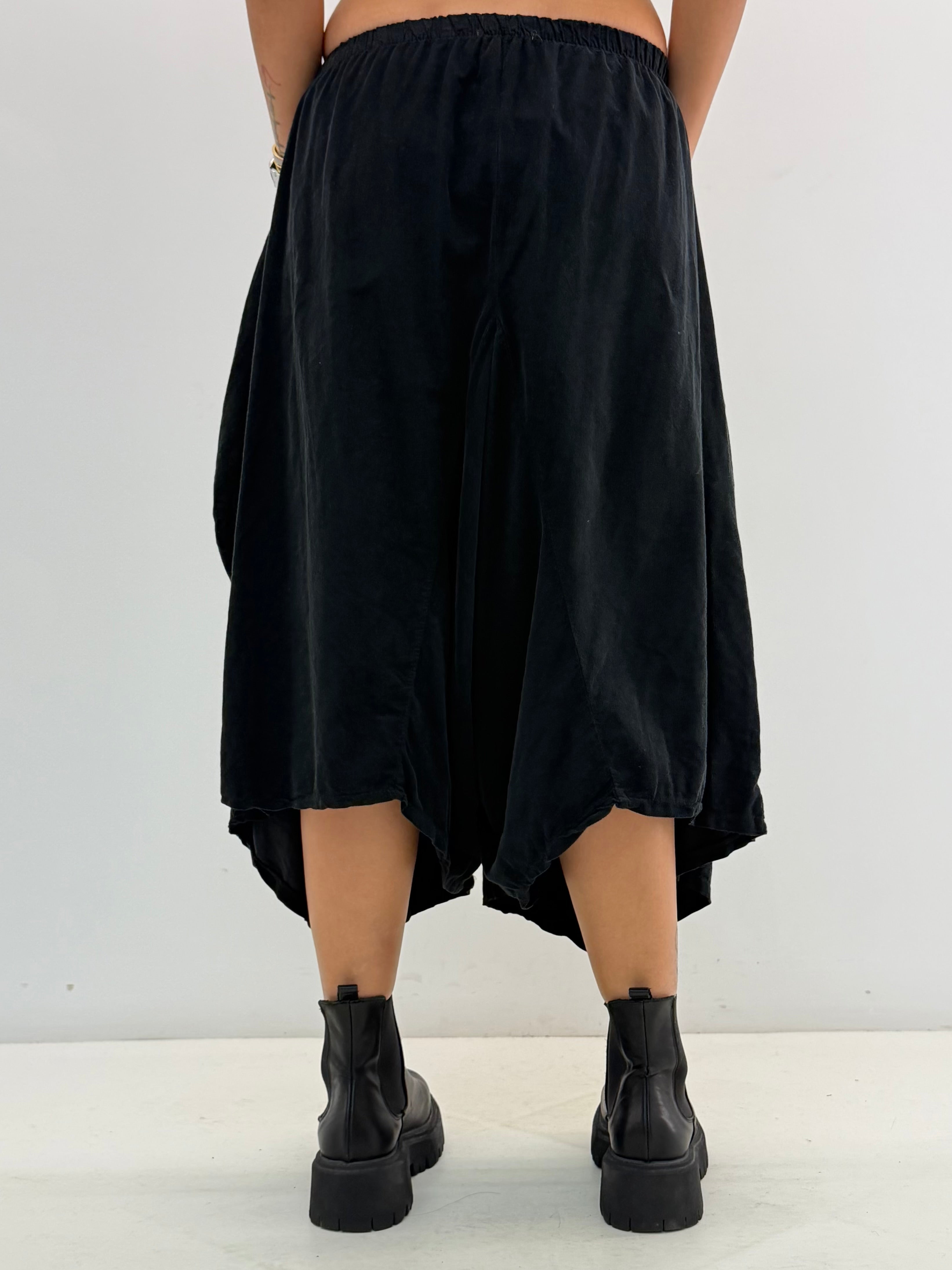 Pantagonna effetto velluto, tasche davanti, cavallo basso.