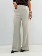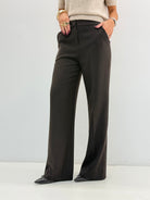 Pantaloni a gamba larga, chiusura con zip e gancetto, tasche laterali a lunetta. Vestibilità a taglie