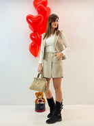 Borsa in vera pelle, manici corti e chiusura con zip, perfetta per ogni occasione, tracolla removibile, foderata all'interno. Dettaglio esterno con cuoricino silver.