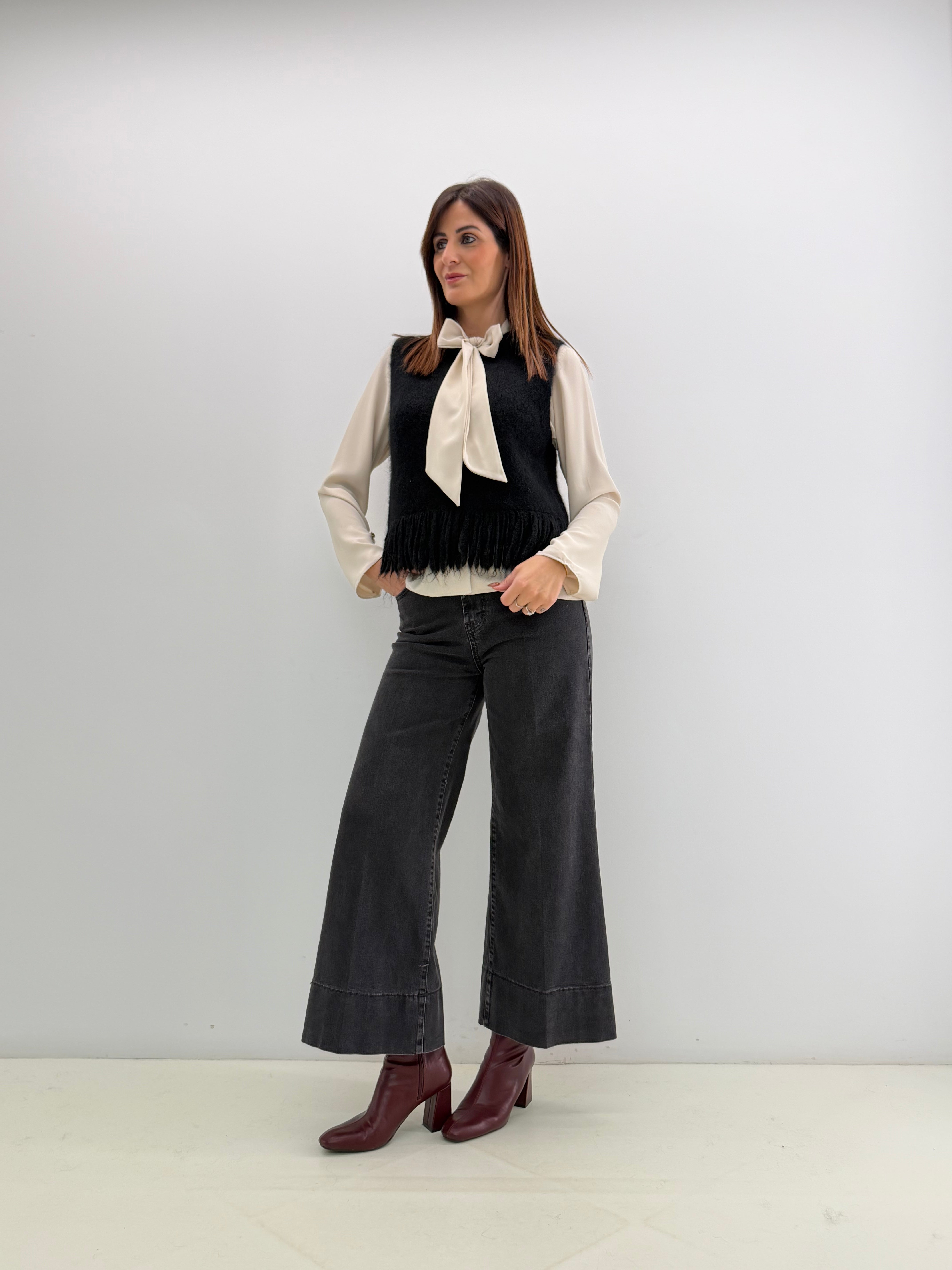 la modella in foto è alta 171 cm e indossa la tg. S/M