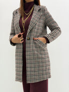 Cappotto in fantasia pied poule, foderato all'interno, colletto revers. Tasche davanti. Spalline imbottite.