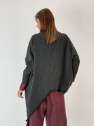 Blusa asimmetrica, pois in rilievo, punta laterale nella parte sinistra. Vestibilità comoda.