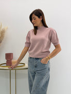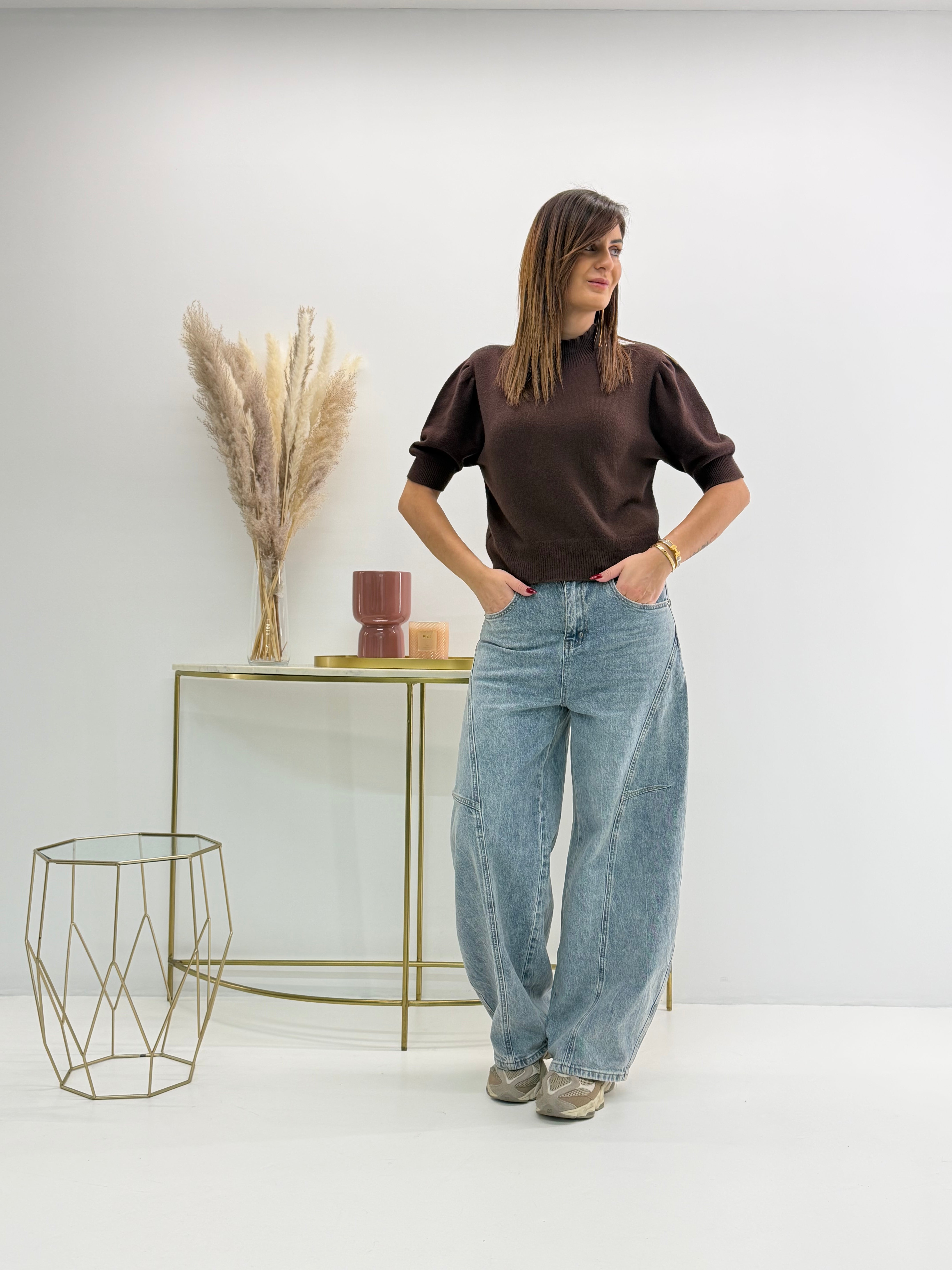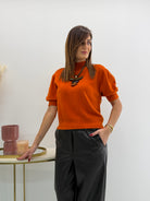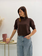 Pull in morbida maglia misto viscosa, maniche a 3/4 e scollo rotondo
