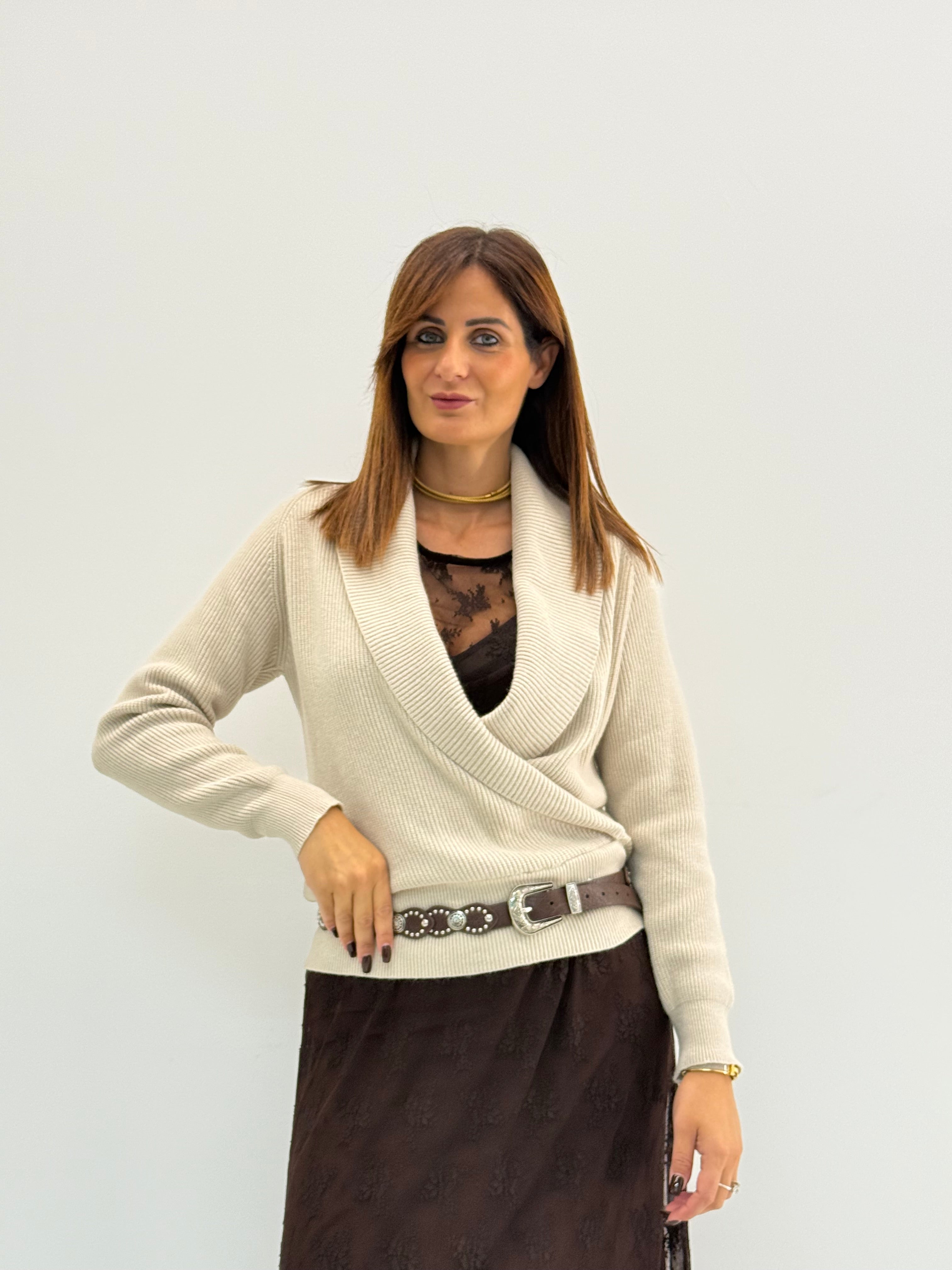 Pull con scollo a V e incrocio sul davanti.