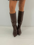 Stivale alto a punta in eco-pelle, con tacchetto. Sarà il protagonista di questa stagione. Moderno, versatile e comodo