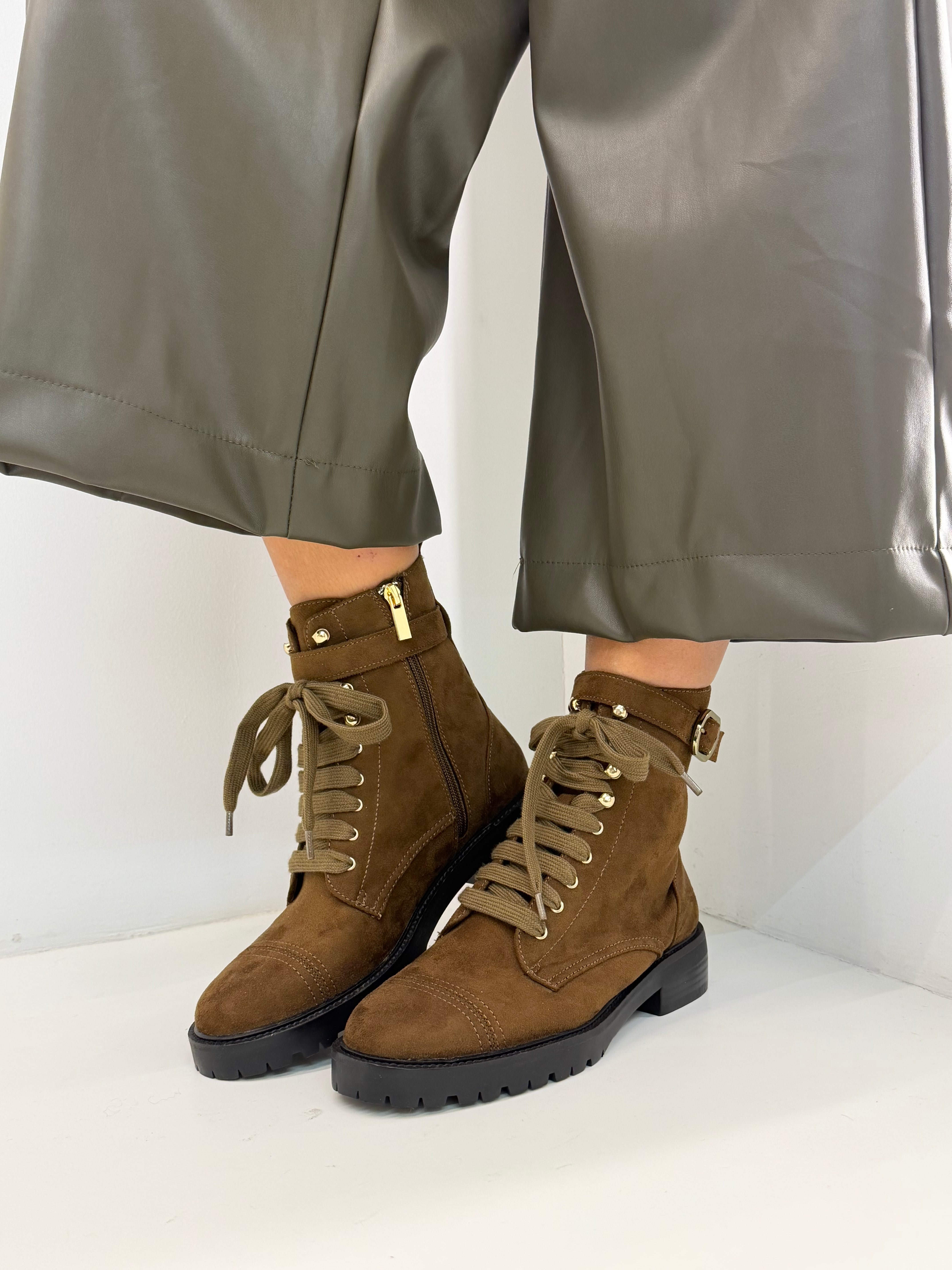 Stivaletto effetto scamosciato, dettagli gold e chiusura con zip laterale. Sarà il protagonista di questa stagione. Moderno, versatile e comodo