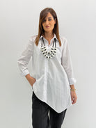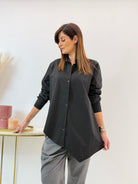Camicia asimmetrica in misto cotone, con colletto. Chiusura con bottoni, punta laterale, polsino con asola e bottone. Comoda vestibilità.