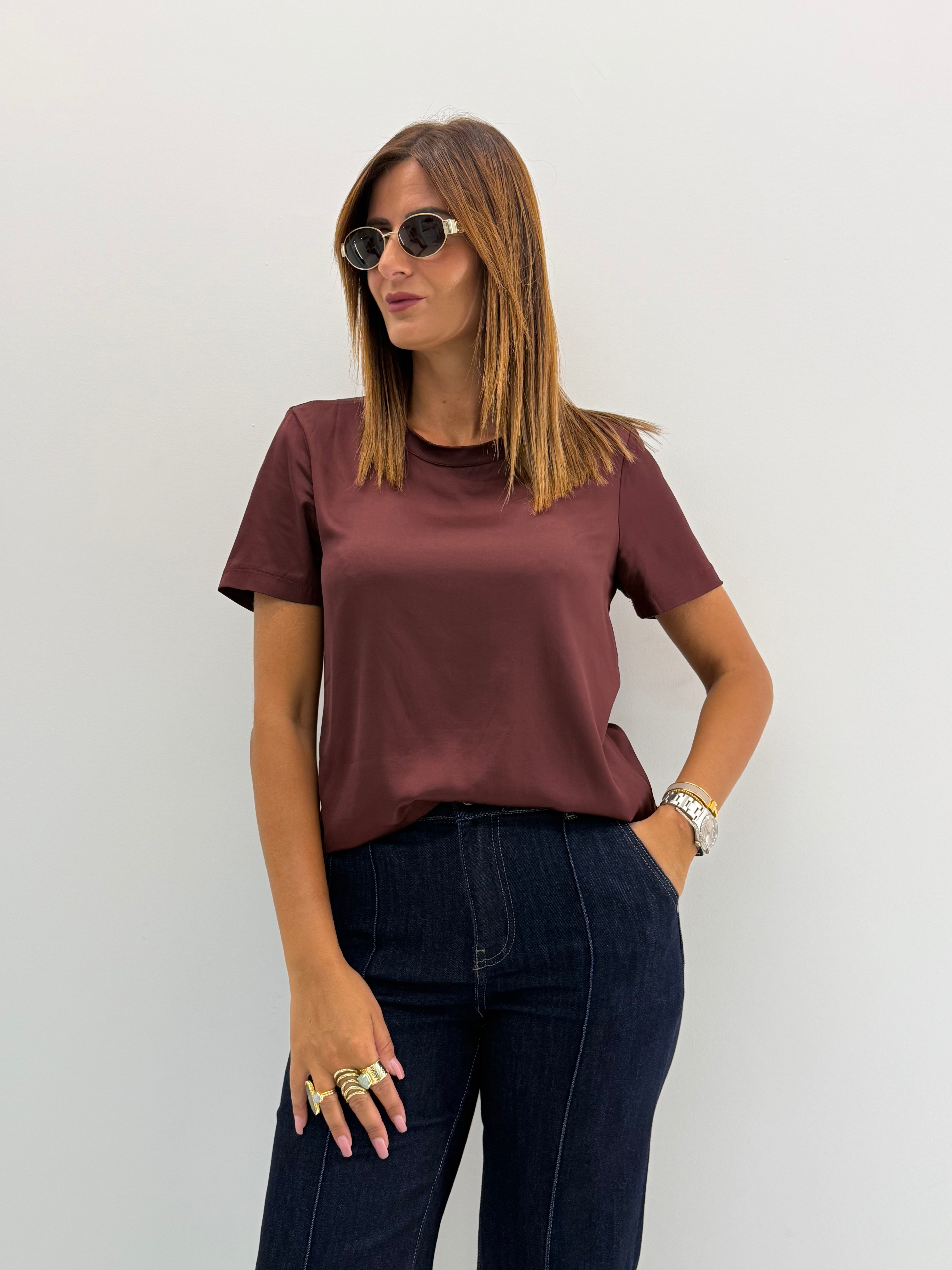 Blusa in misto viscosa effetto saten.