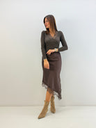 la modella in foto alta 171 cm e indossa la tg. S/M