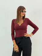 Body in lycra, con scollo a V, elasticizzato, chiusura con bottoncini nella parte finale.