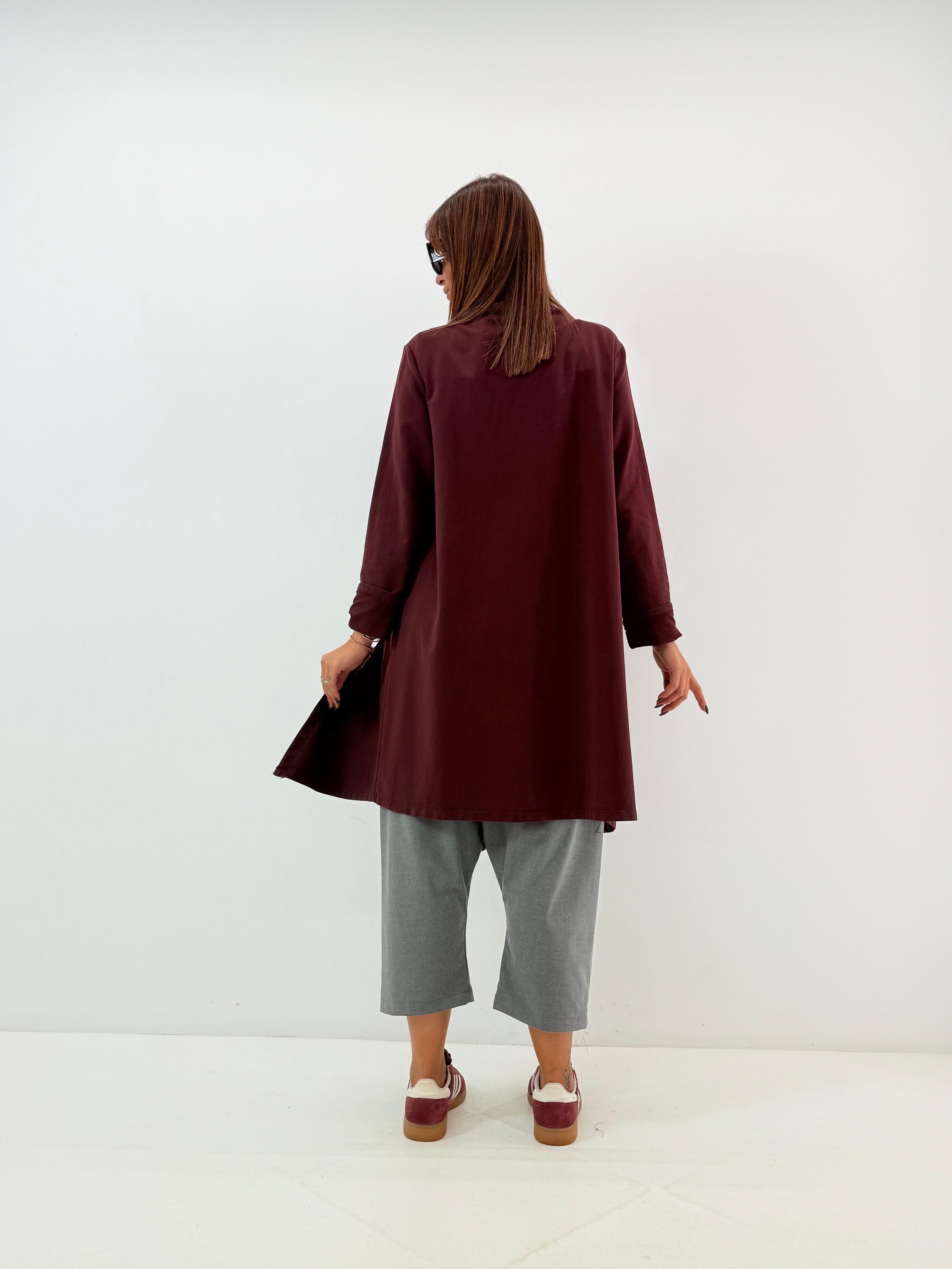 Maglia in cotone, scollo rotondo e spalla morbida. Maniche lunghe. Taglio morbido e leggermente svasato, più lunga dietro e orlo stondato sul davanti. Senza chiusure. Comoda vestibilità.