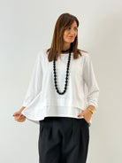 Maglia con balze davanti, più lunga dietro.