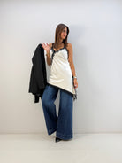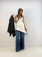 la modella in foto è alta 171 cm e indossa la tg S/M