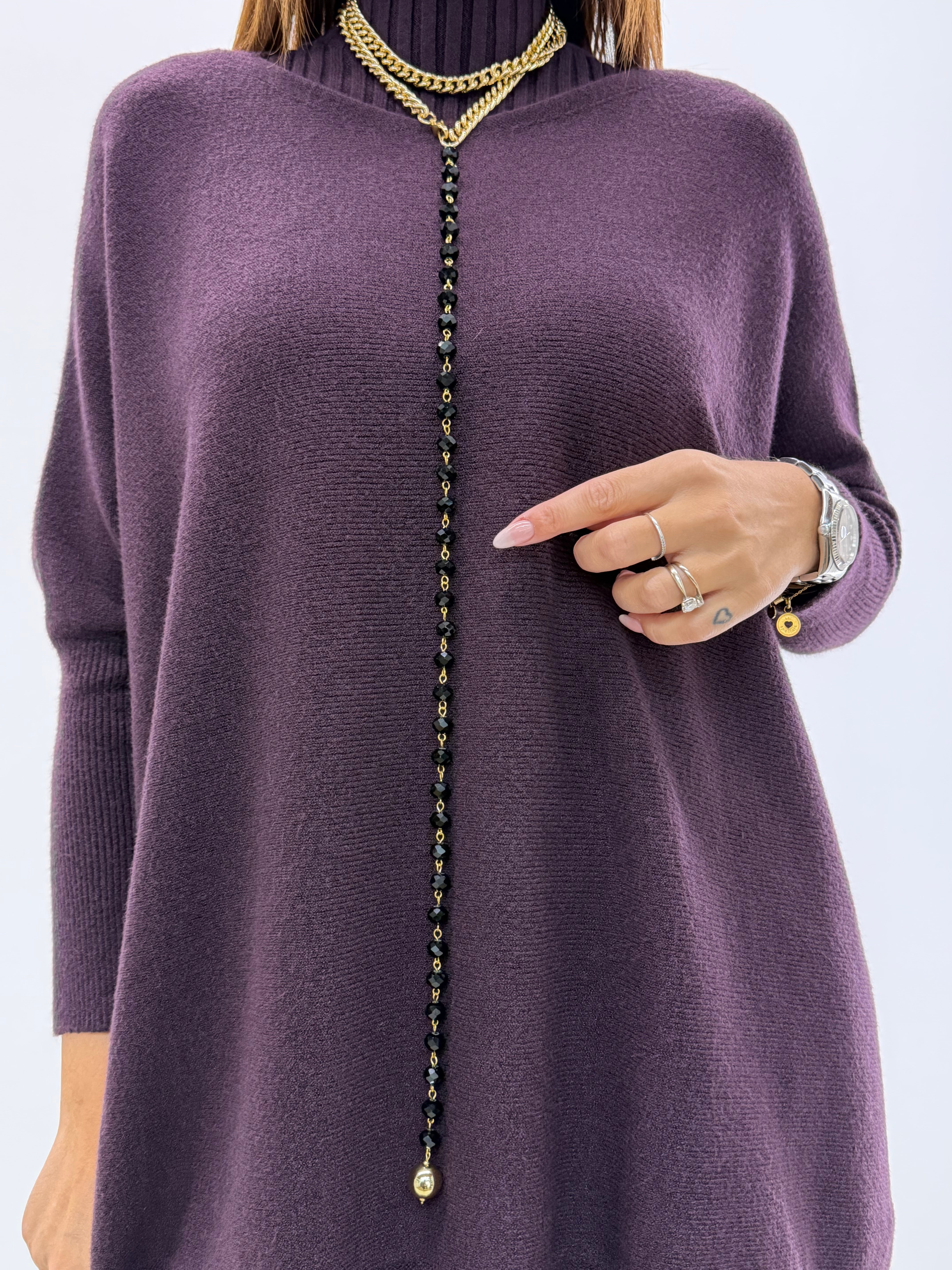 COLLANA LUNGA GOLD/PERLE NERE MUPAJI