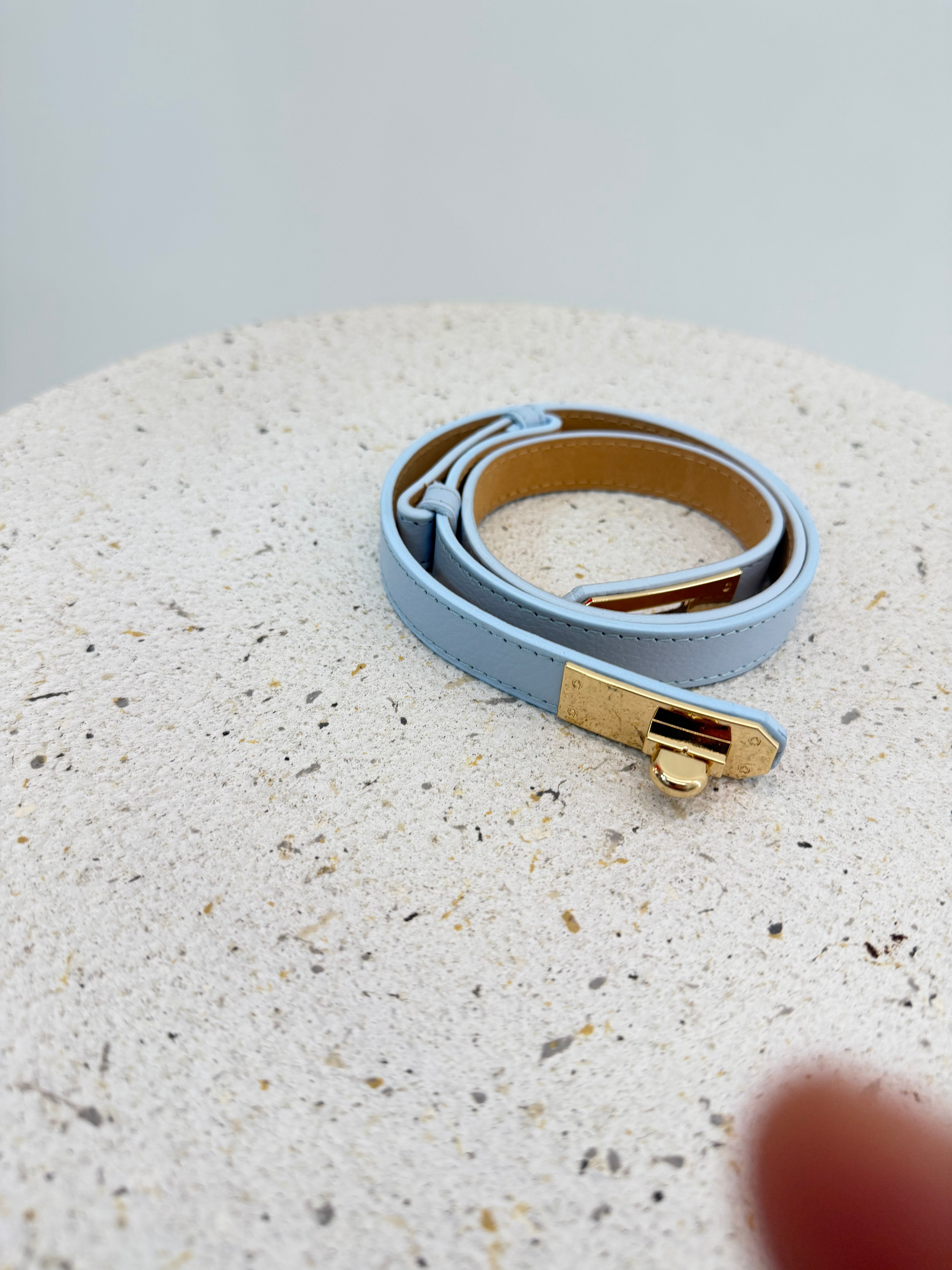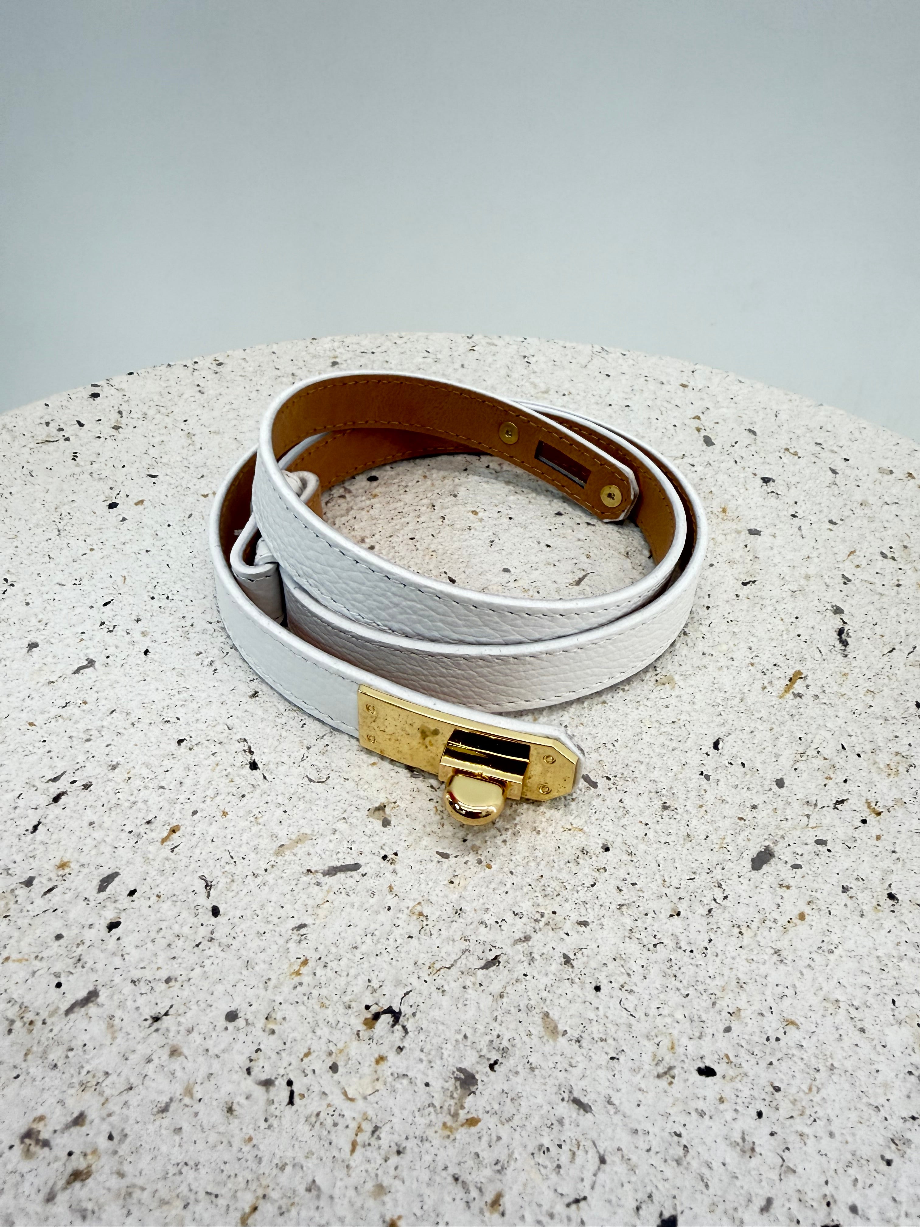 Cintura in pelle, regolabile, chiusura con gancetto gold.