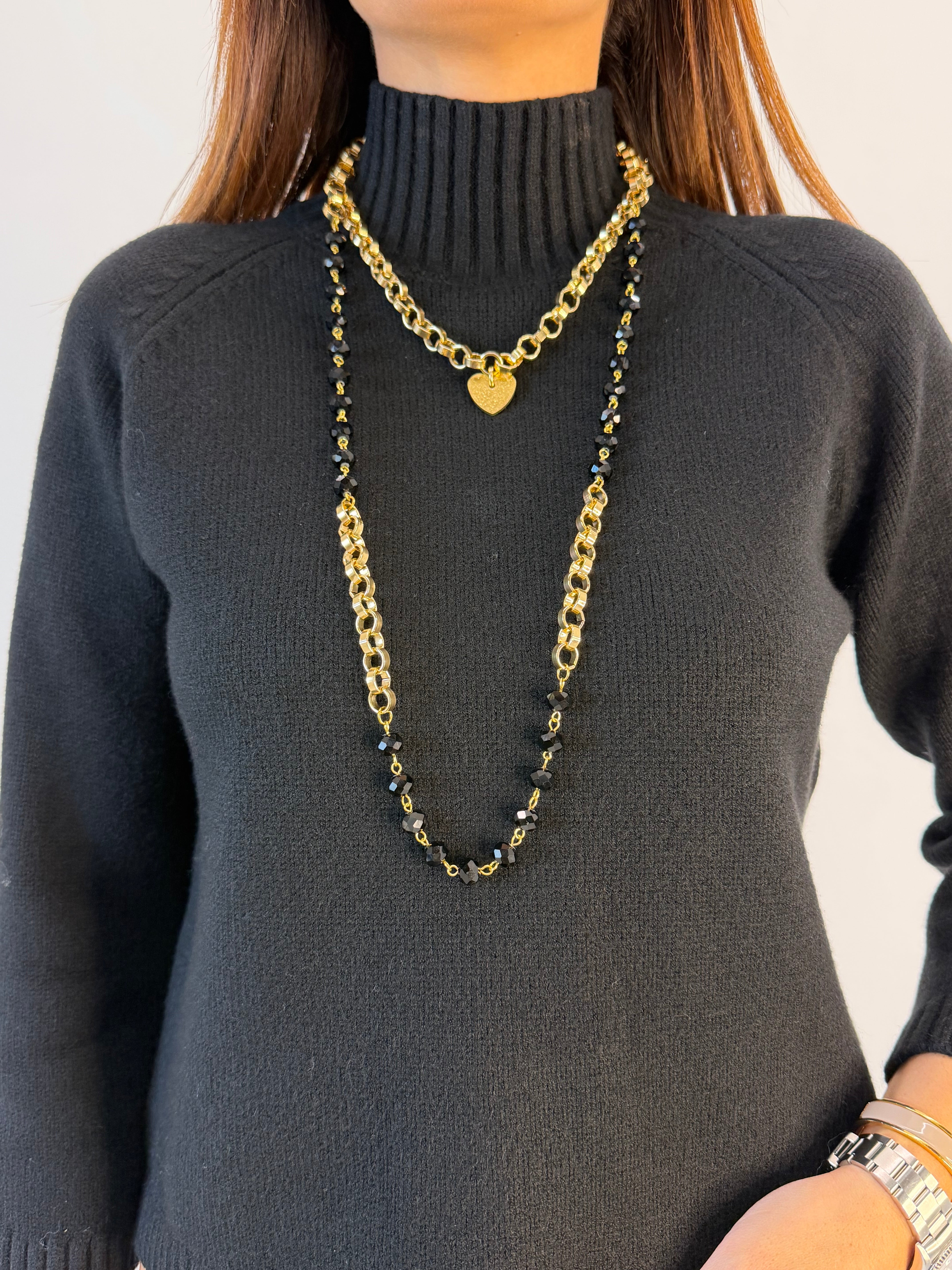 COLLANA LUNGA GOLD/NERA MUPAJI
