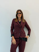 Giacca in punto Milano. Chiusura con bottoni, spalline imbottite.