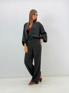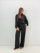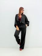 Giacca con fodera interna, con elastico finale e chiusura con zip, finte tasche a filetto.