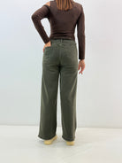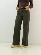 Jeans a vita alta, in cotone, modello a gamba larga. Chiusura frontale con cerniera e bottone, tasche davanti. Vestibilità a taglie