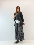 Felpa con colletto in morbido tessuto in misto cotone. Corto davanti e più lunga dietro. Spalla leggermente calata e maniche lunghe. Comoda vestibilità.