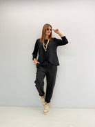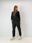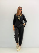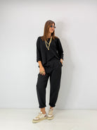 Pantalone con fascia elasticizzata in vita, senza chiusure ,tasche laterali a lunetta. Vestibilità comoda