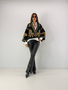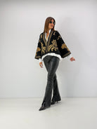 la modella in foto è alta 171 cm e indossa la taglia S/M