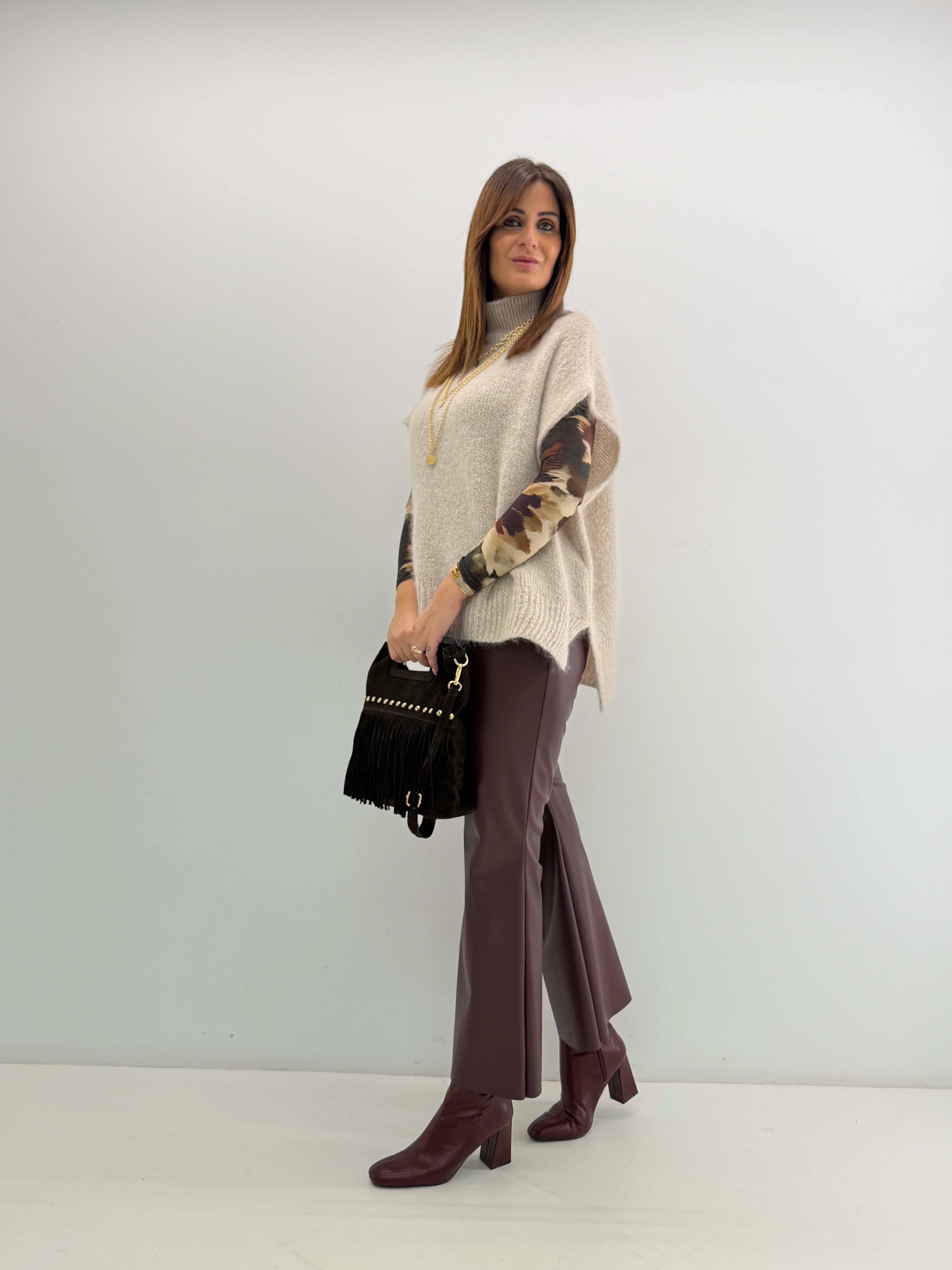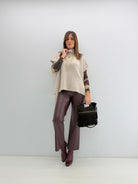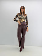 PANTALONE LETIZIA IN ECOPELLE BORDEAUX