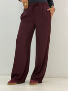 Pantalone con tasche laterali a scomparsa, elastico in vita e coulisse regolabile, modello a gamba larga. Vestibilità a taglie.