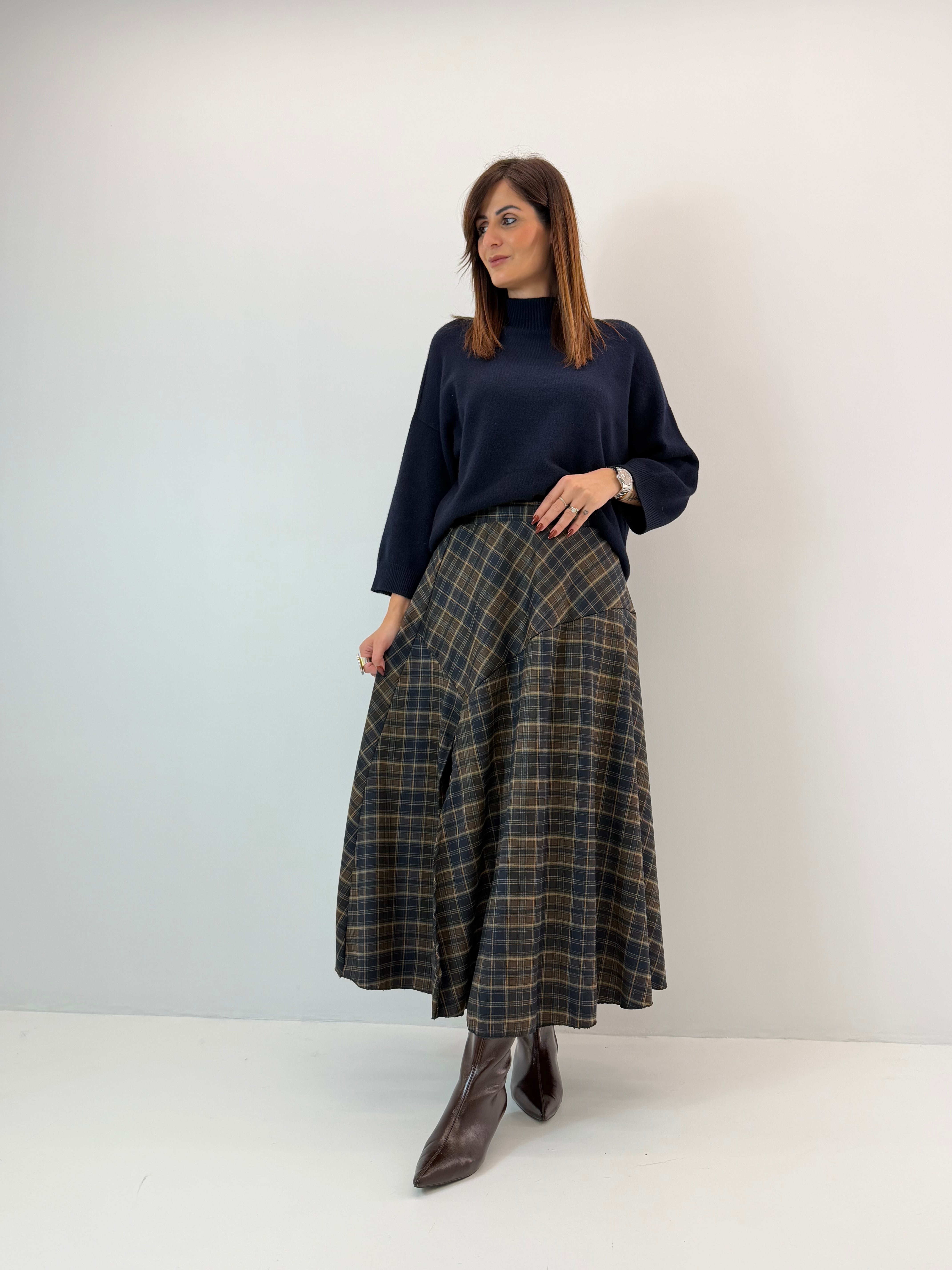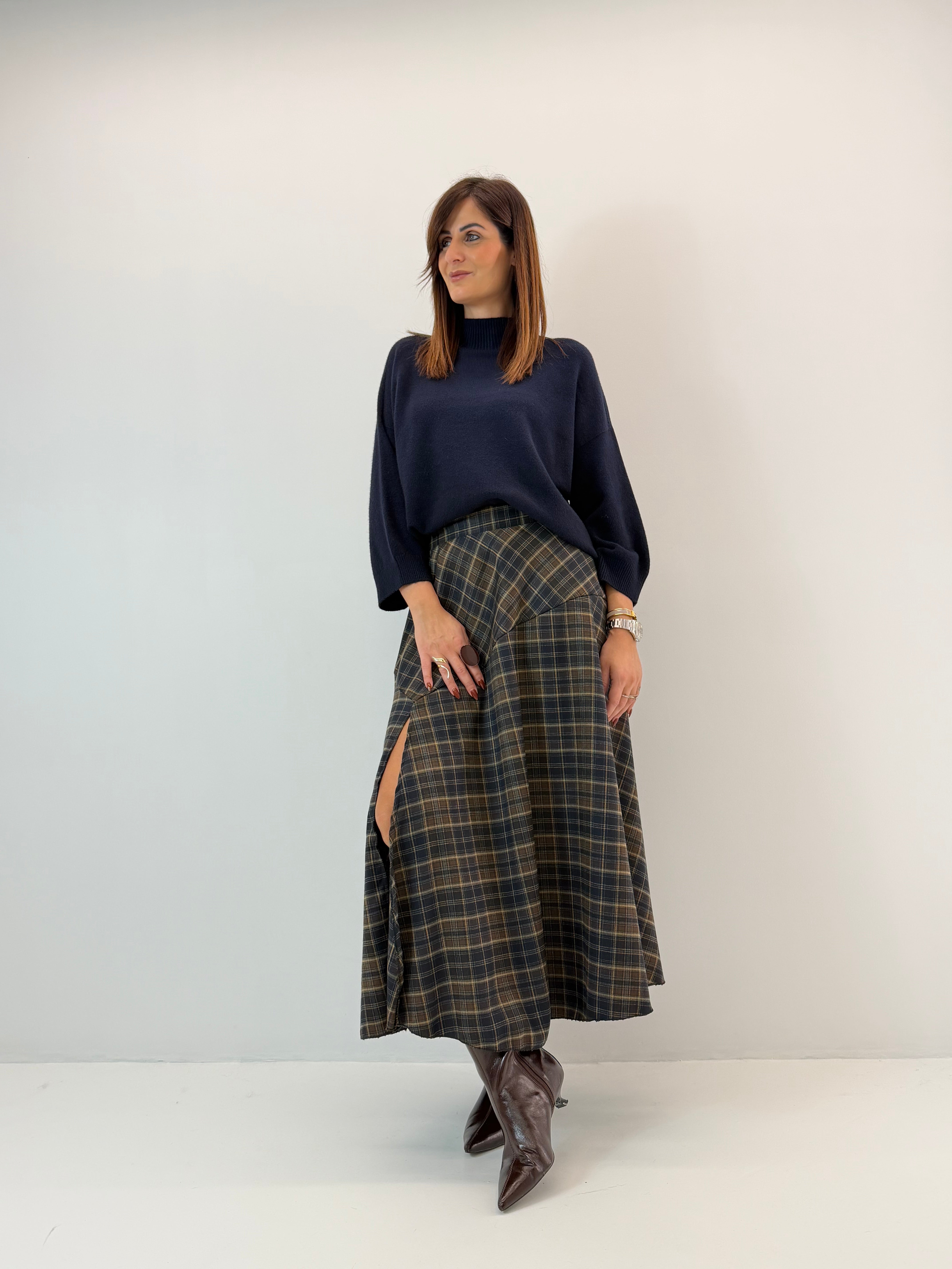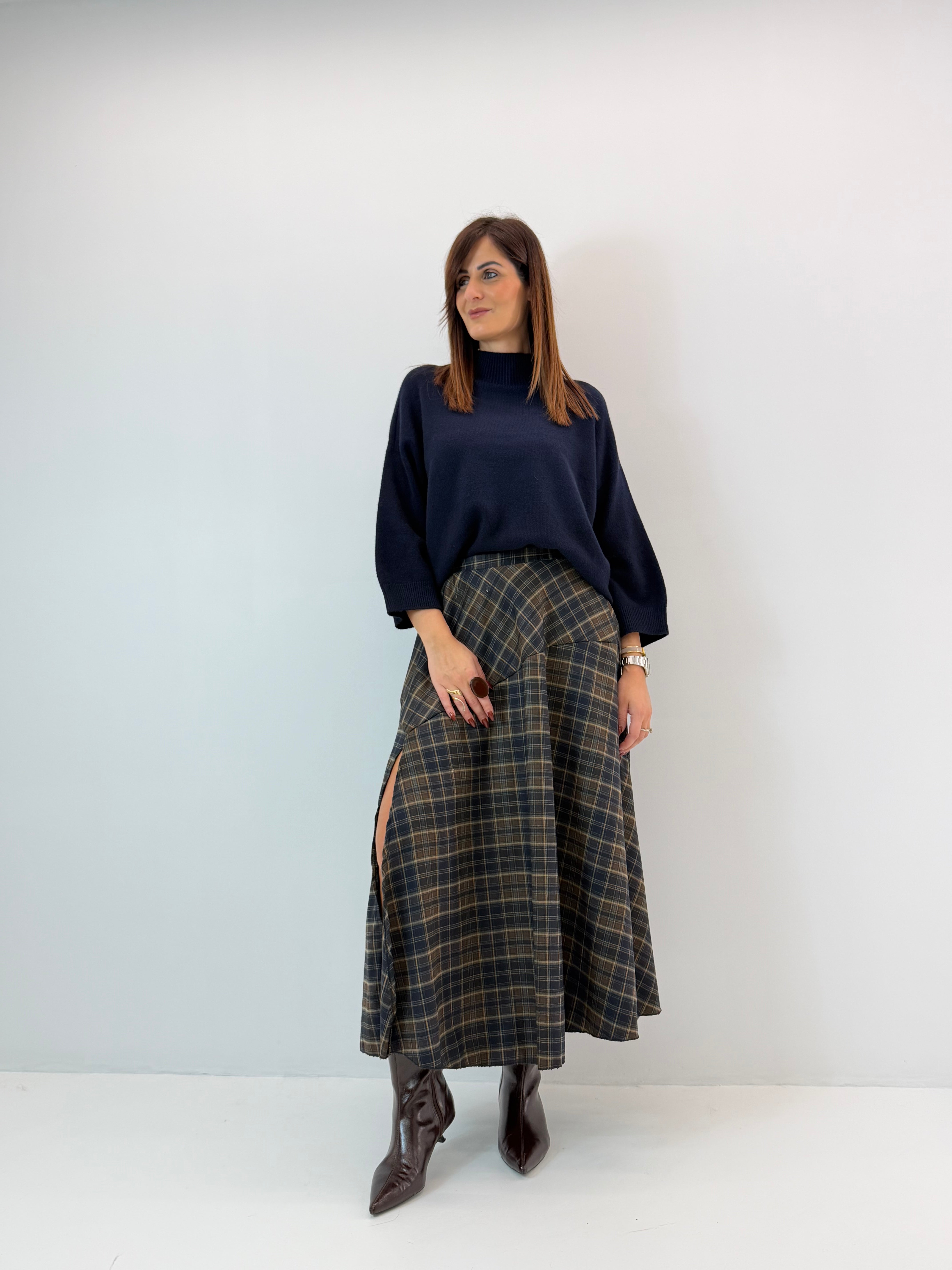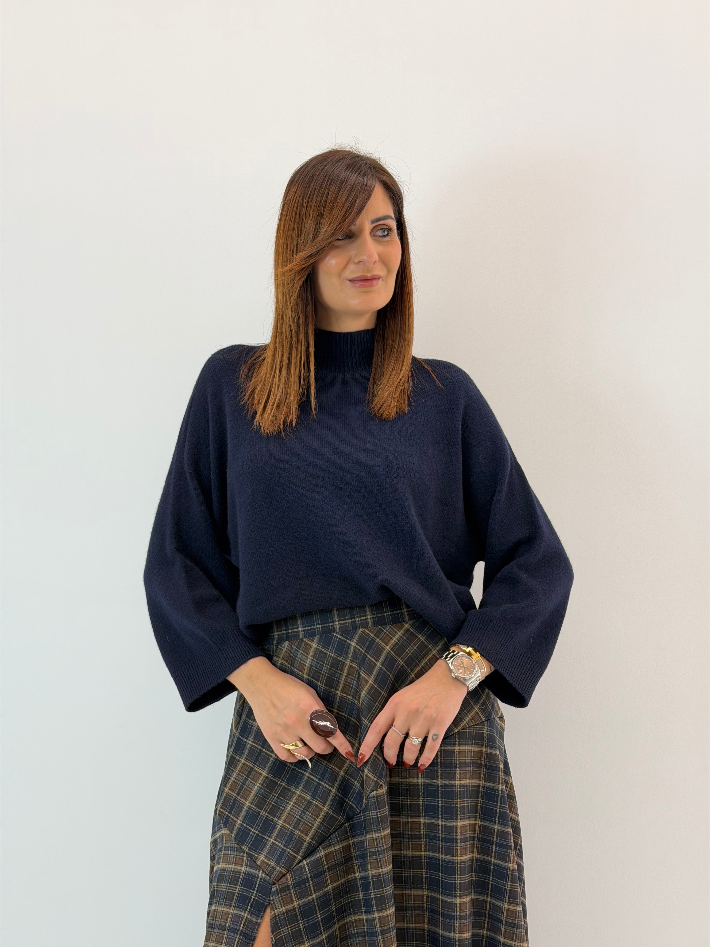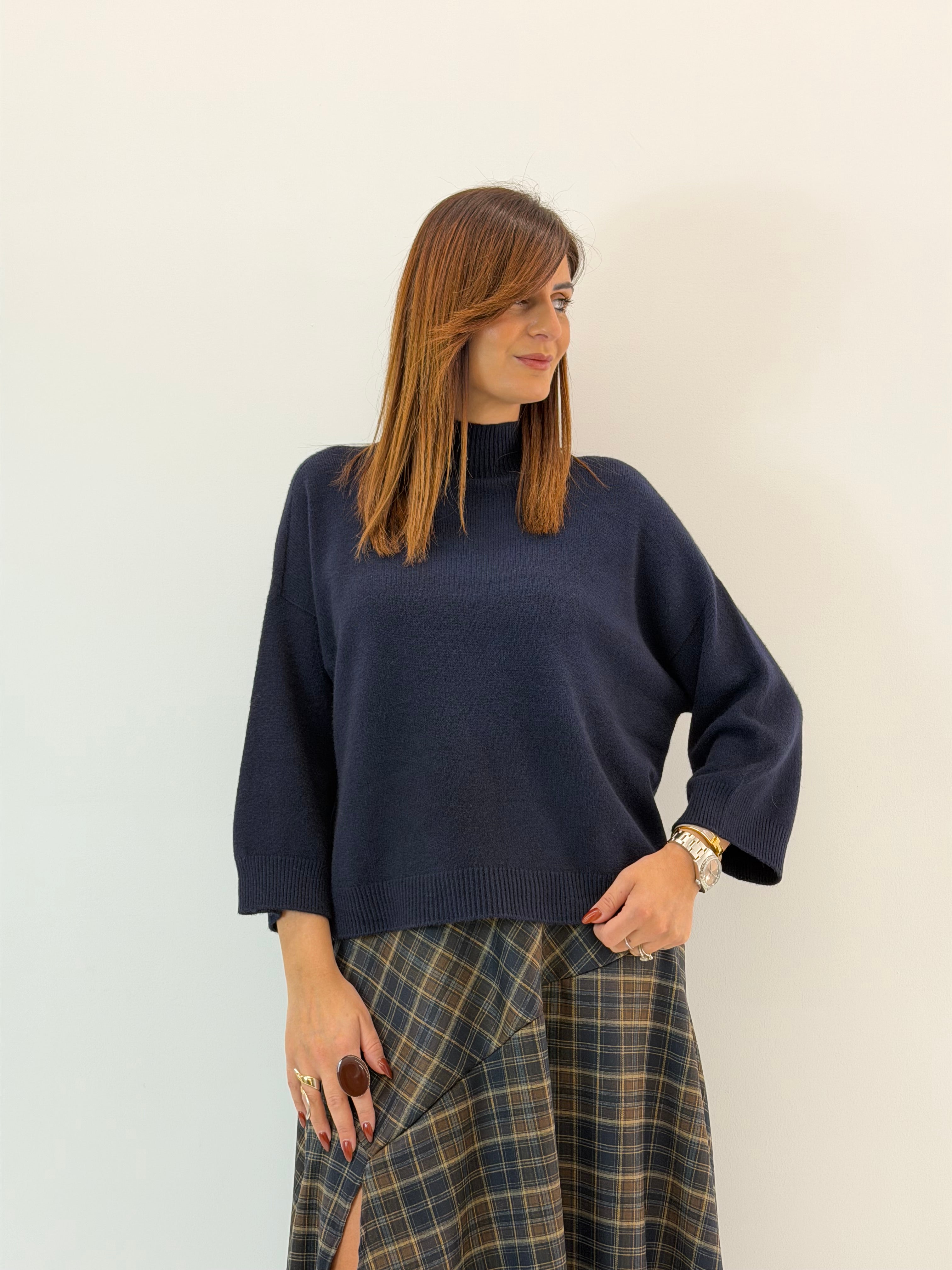 Pull in morbida maglia, colletto alto, maniche a 3/4.