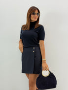 Short a portafoglio, chiusura dietro con zip invisibile. Vestibilità a taglie