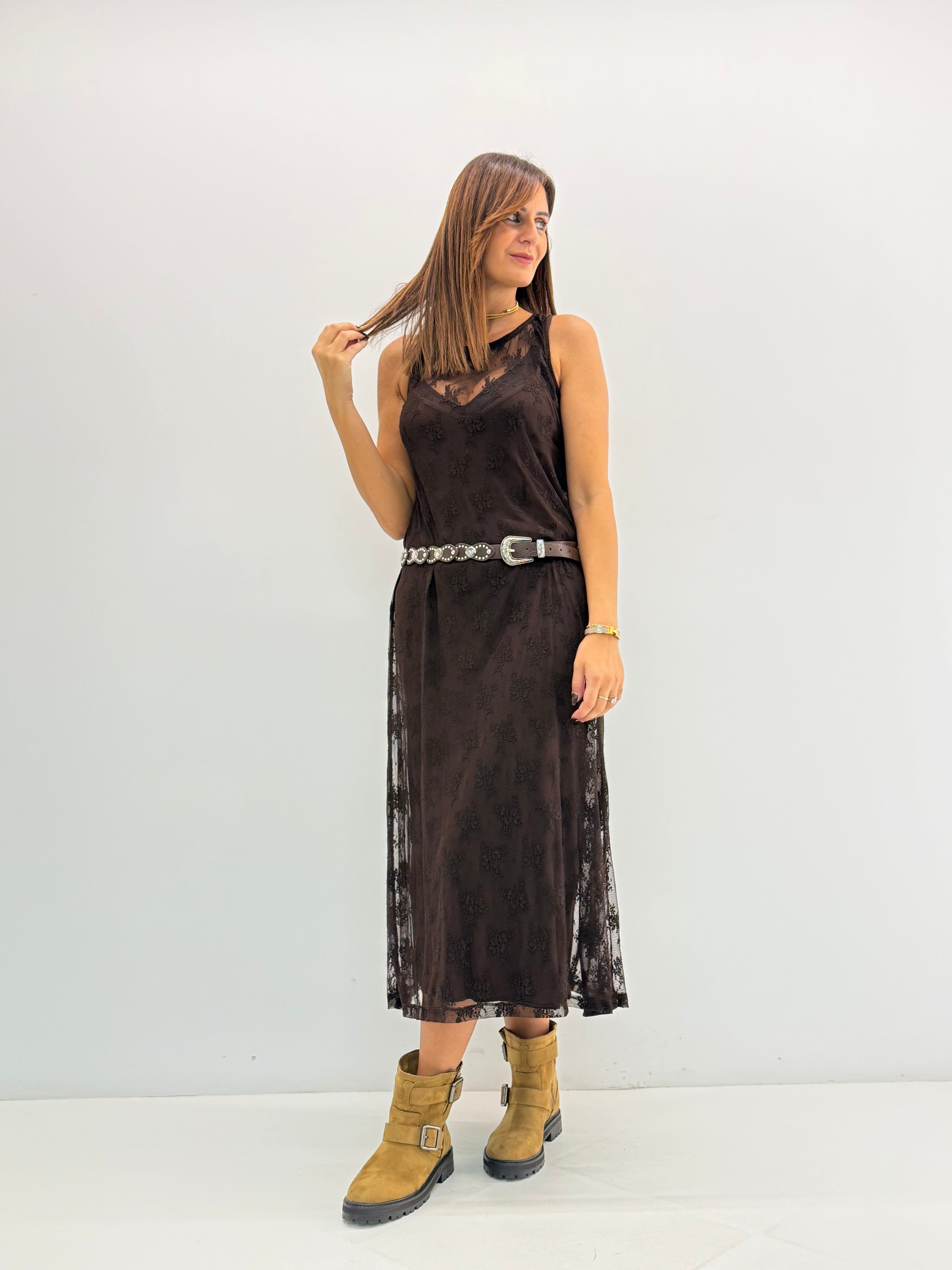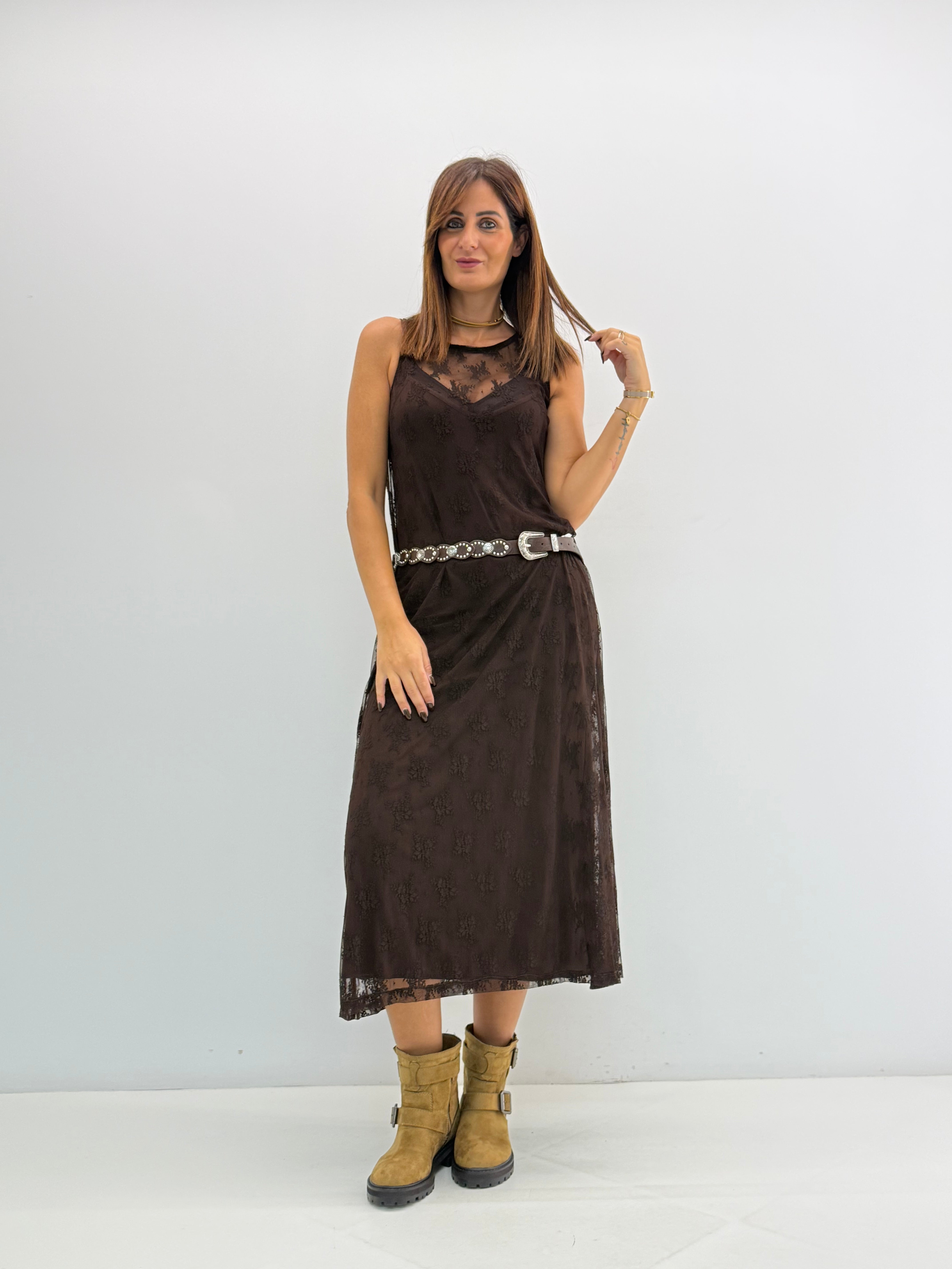 Abito, in pizzo con sottoveste.