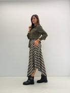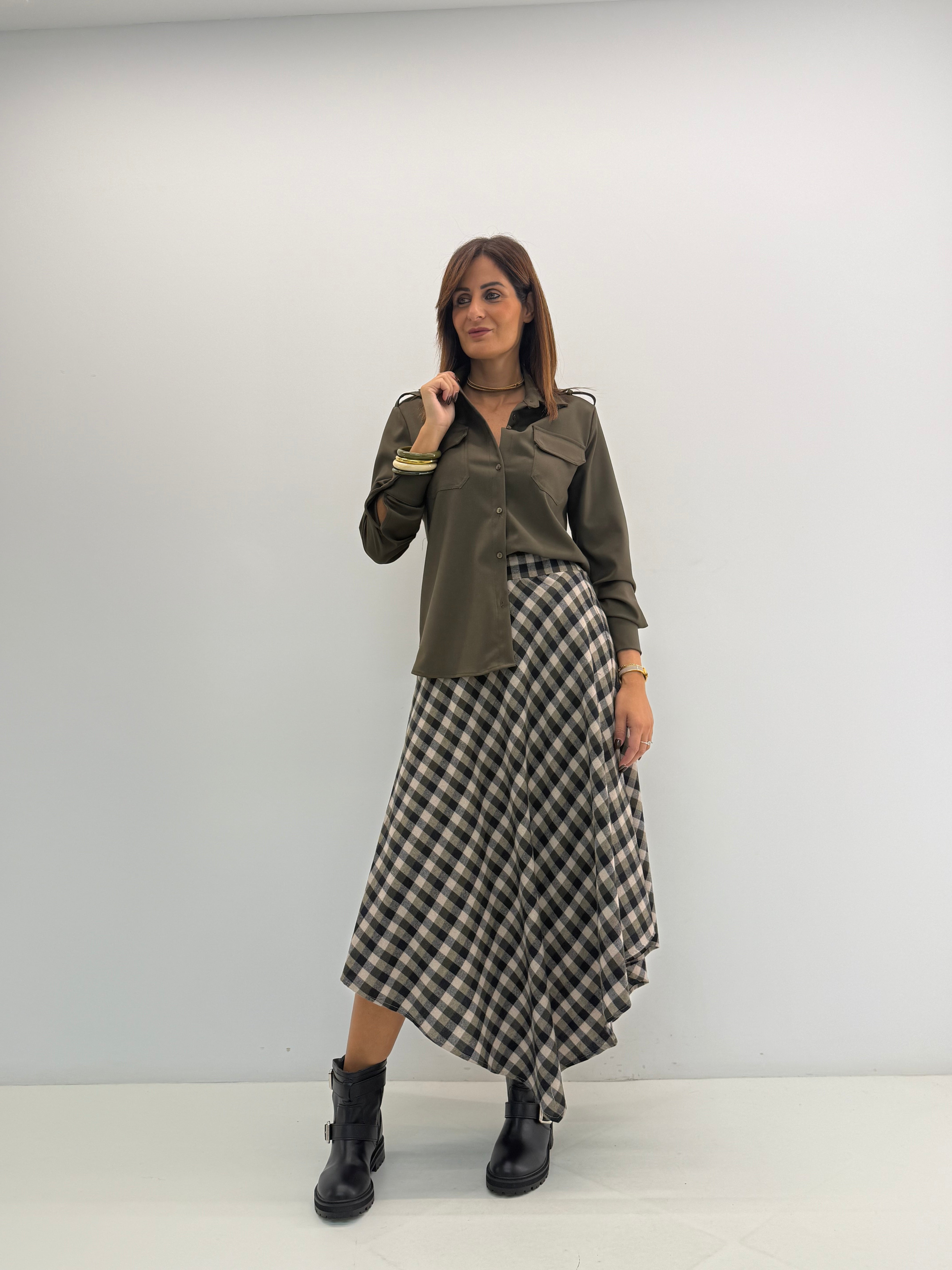 Gonna con elastico in vita dietro. Taglio asimmetrico.