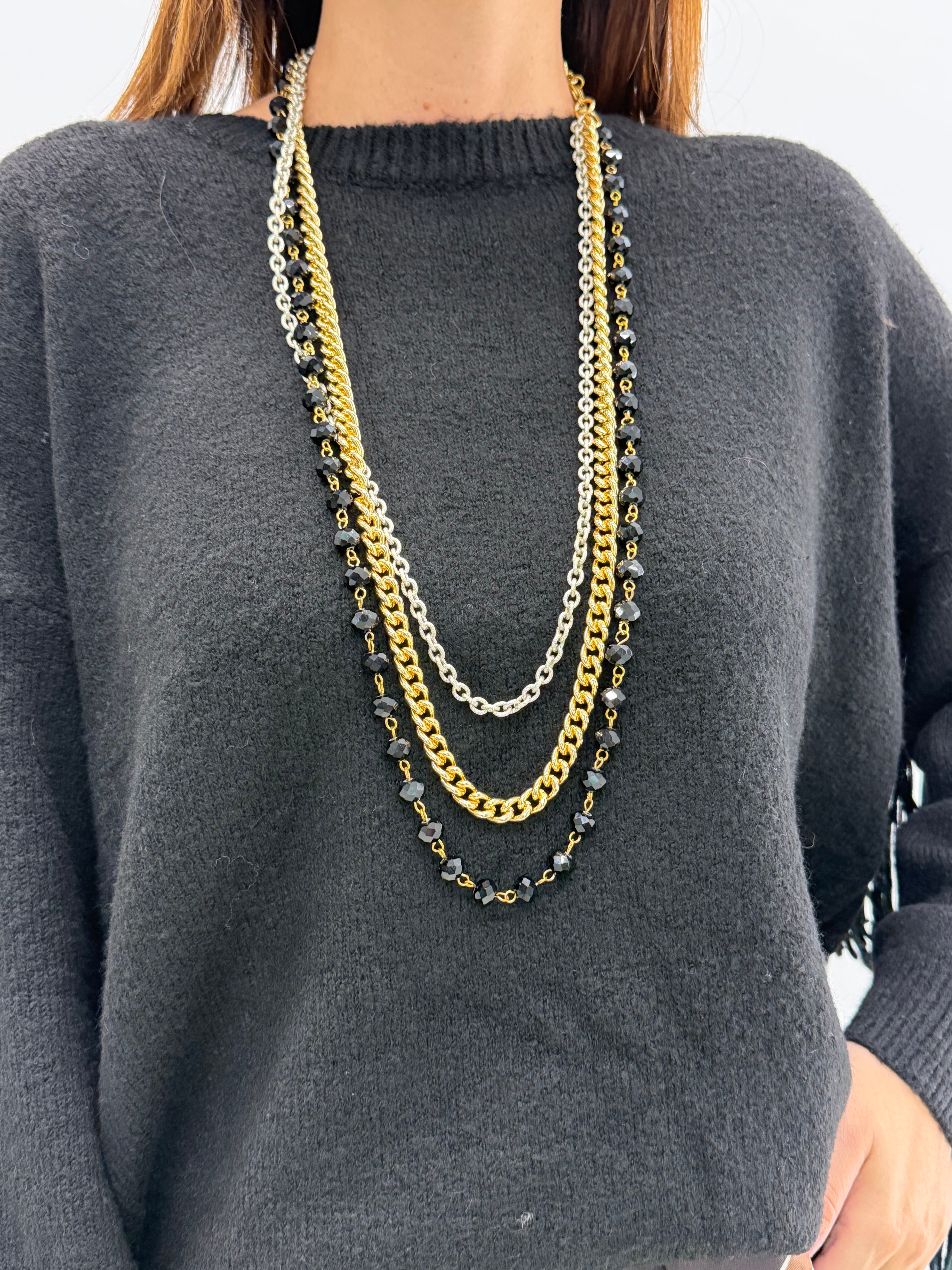 COLLANA TRIPLA GOLD/SILVER/NERO MUPAJI