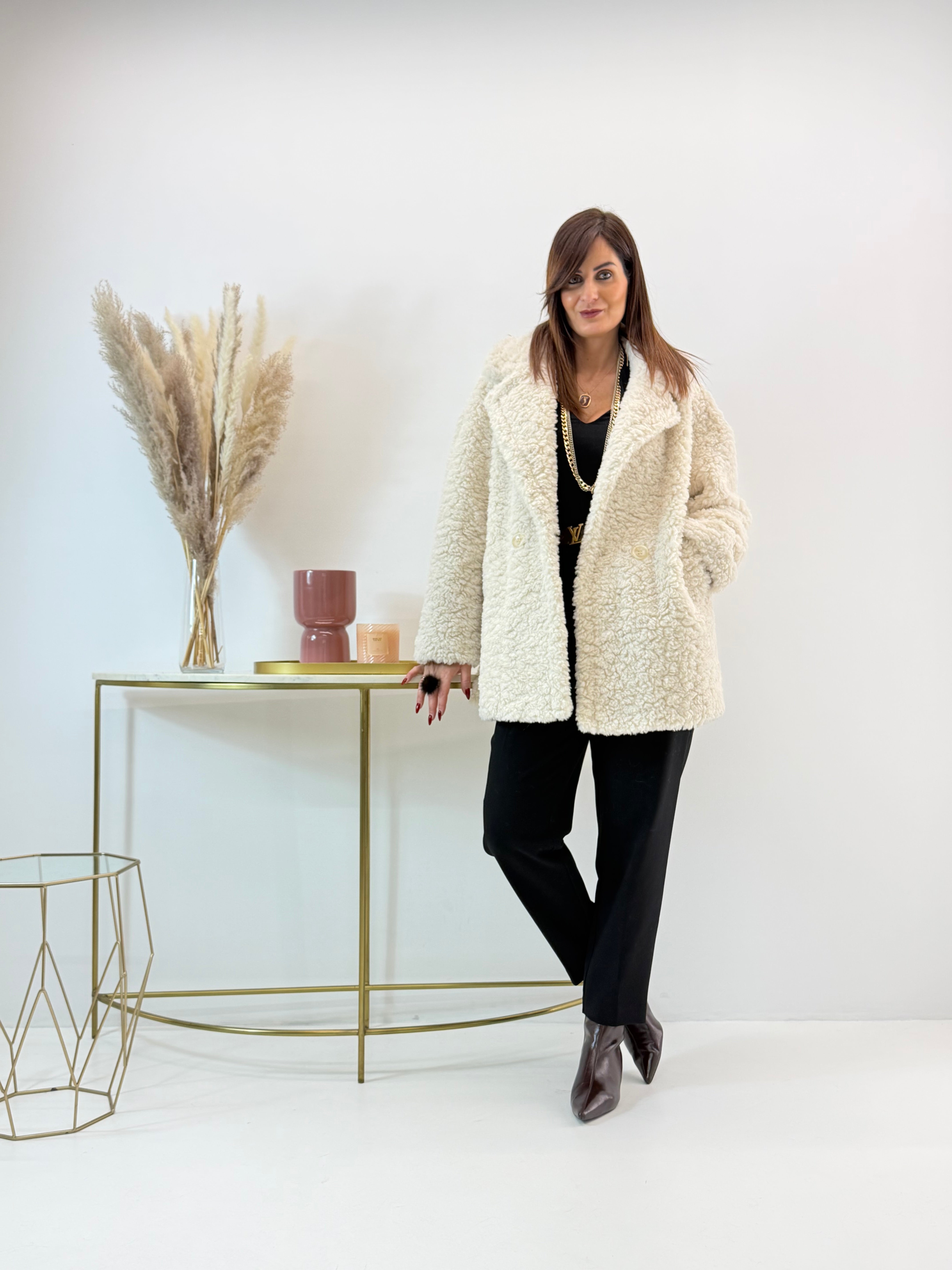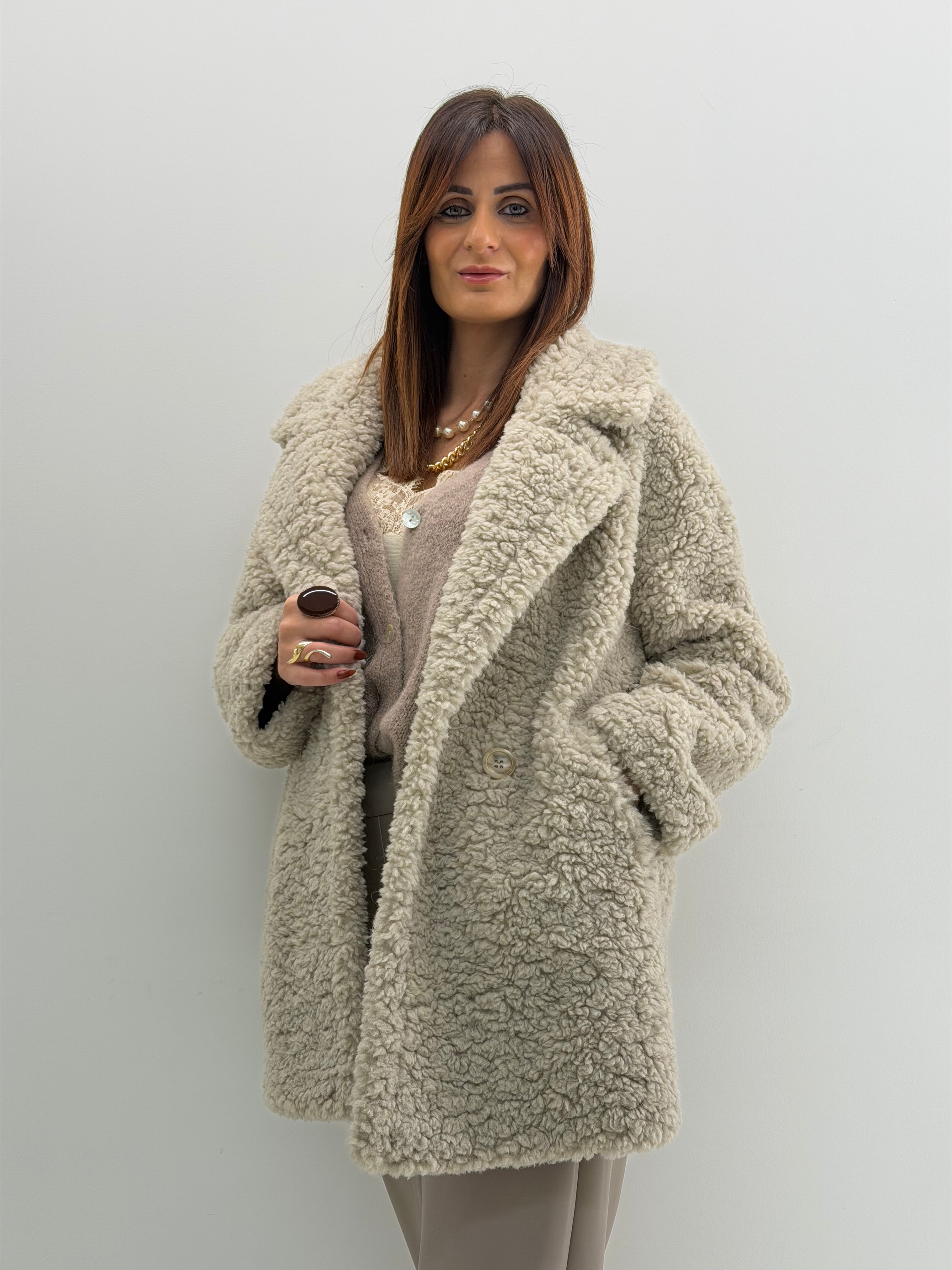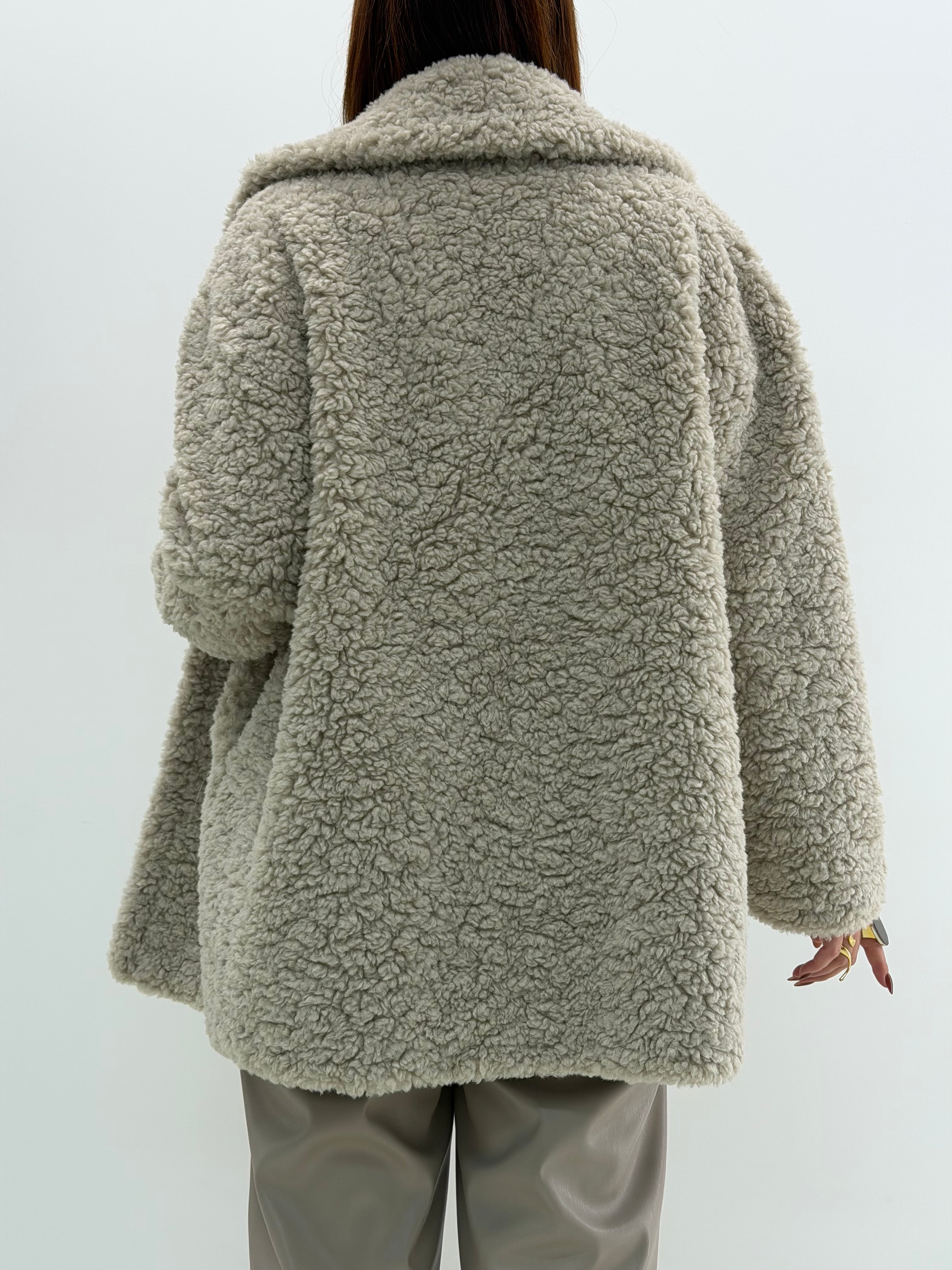 Giacca teddy, tasche laterali e chiusura con bottoni davanti. Un capo caldo e versatile ideale per la stagione invernale. Foderato all'interno.