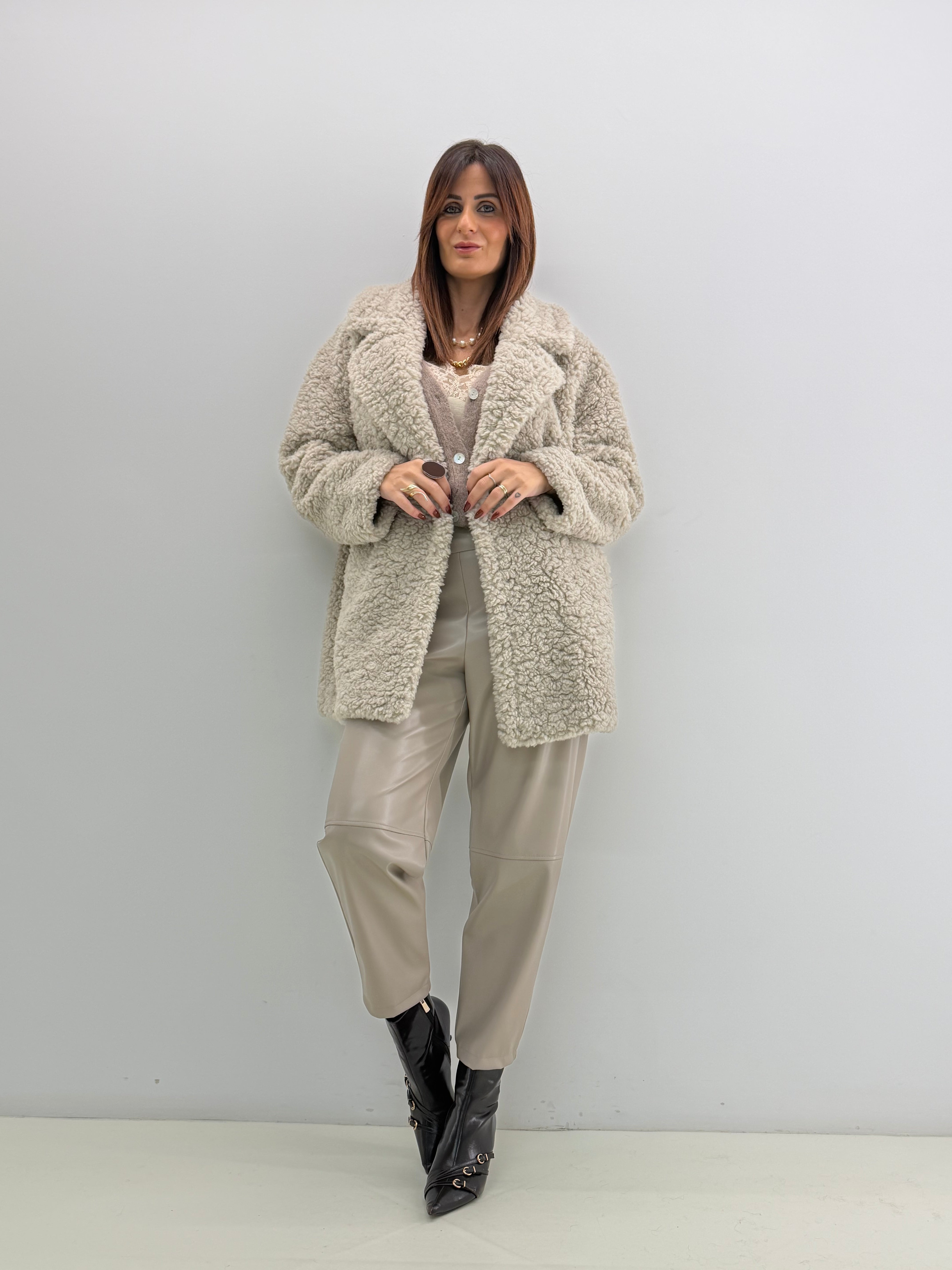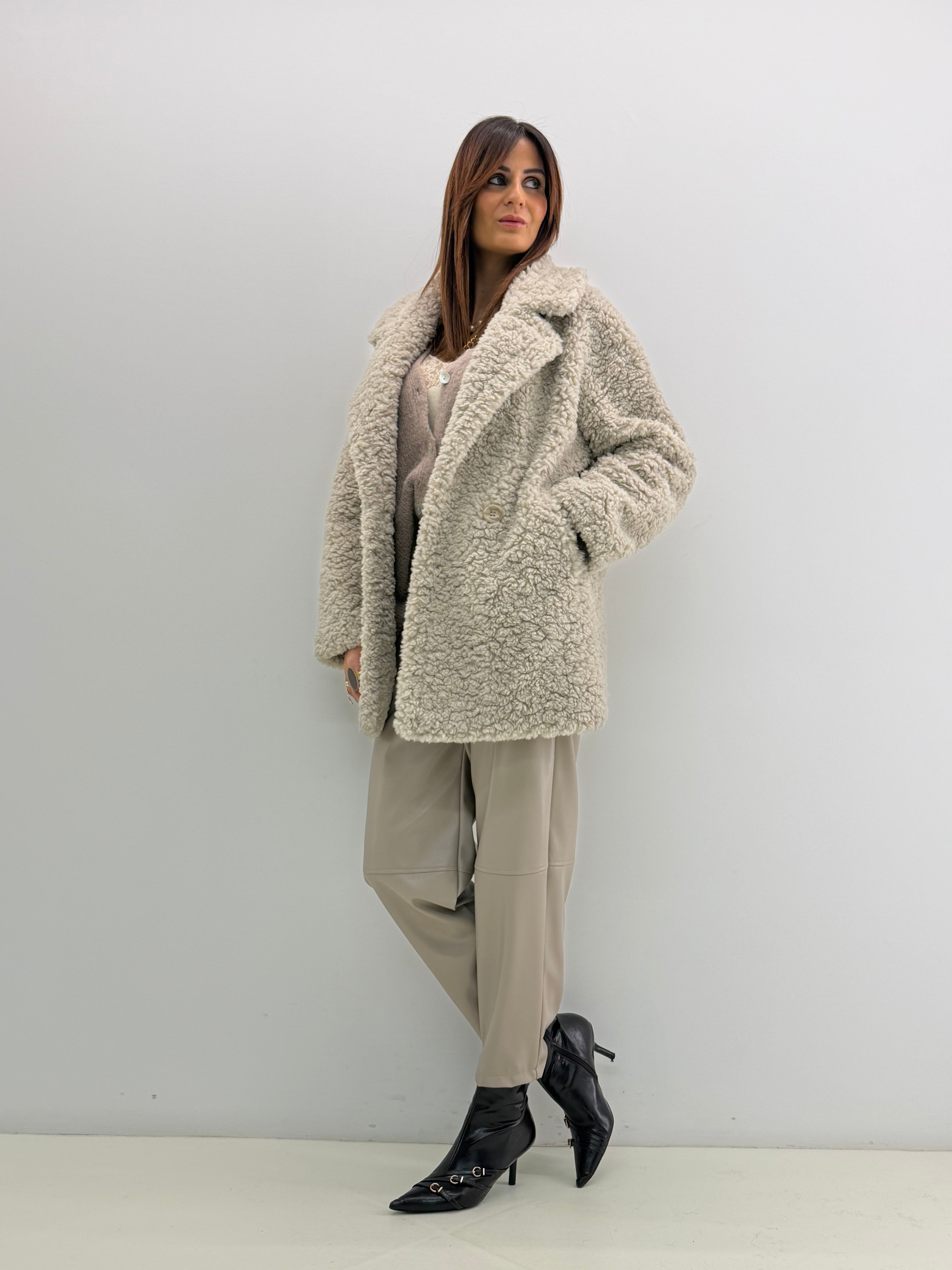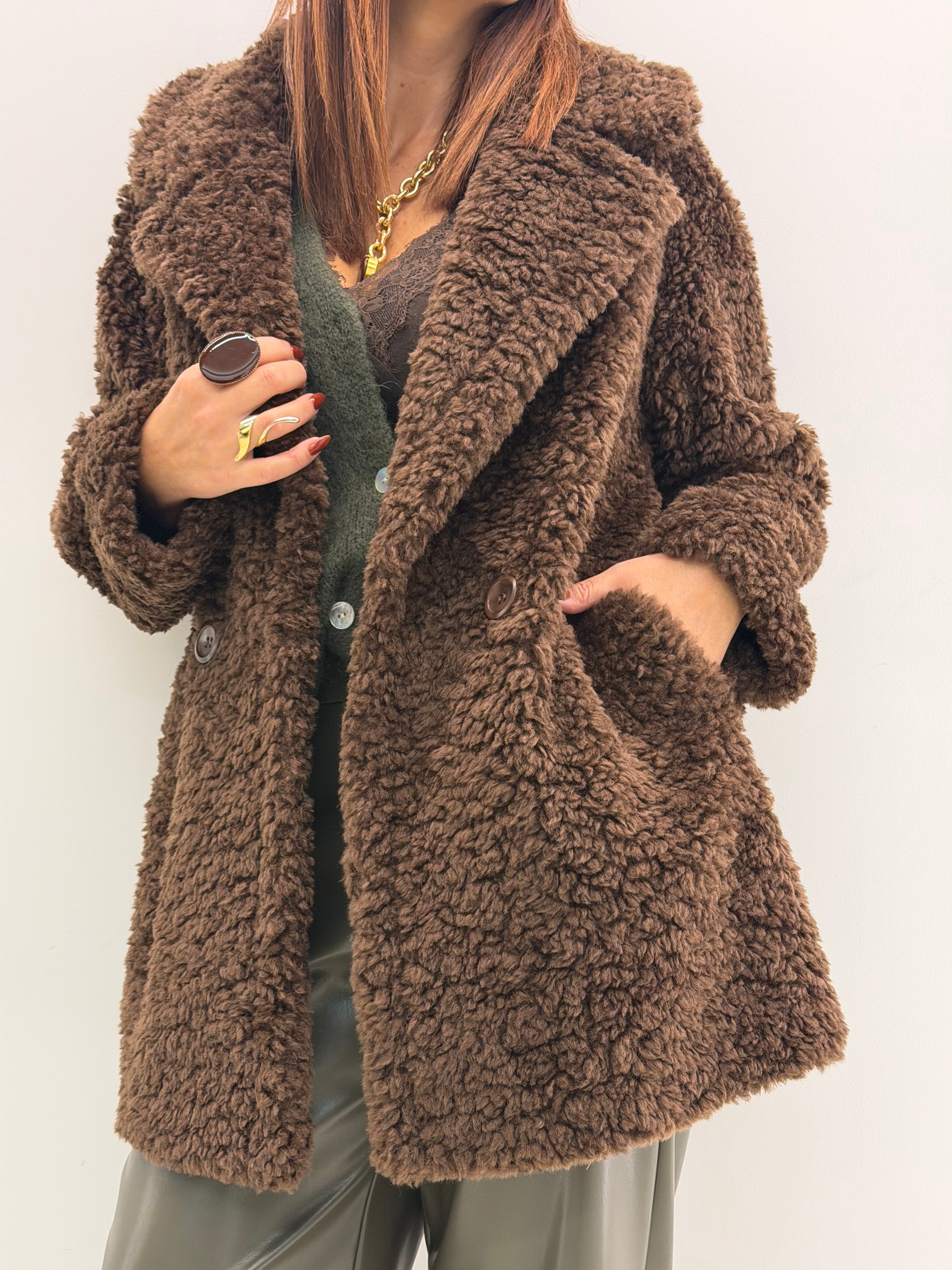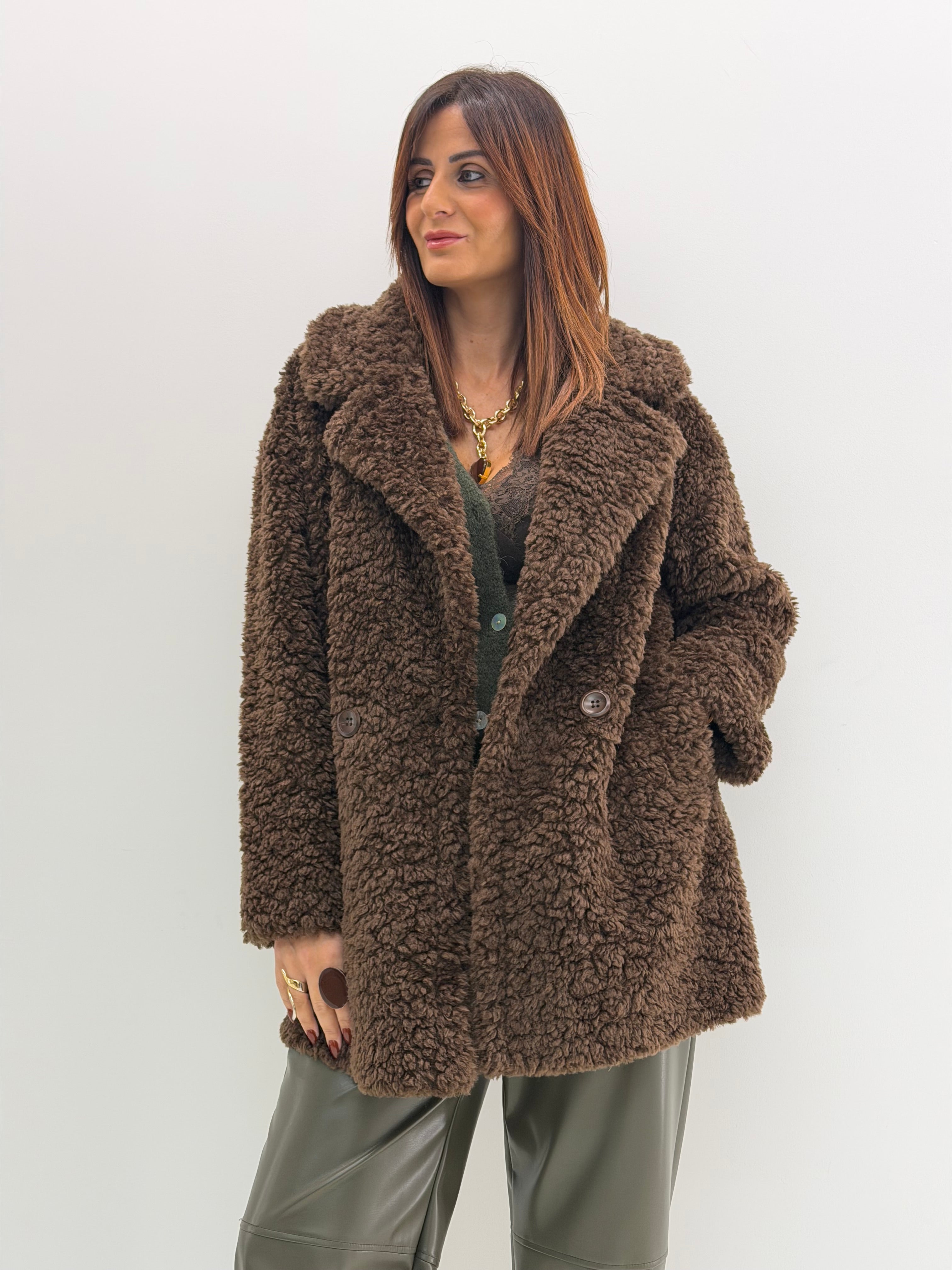 Giacca teddy, tasche laterali e chiusura con bottoni davanti. Un capo caldo e versatile ideale per la stagione invernale. Foderato all'interno.